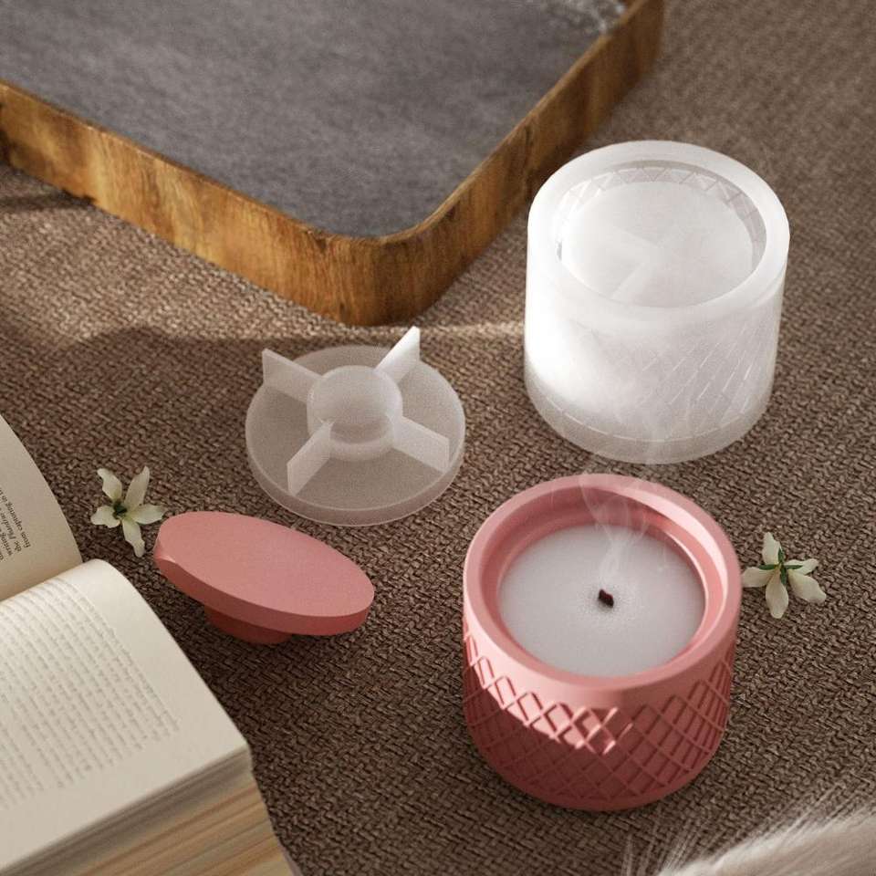 Circular Grid Storage Box Storage Jar Aromatherapy Candle Cup Container Gypsum Resin Candle Silicone Mold