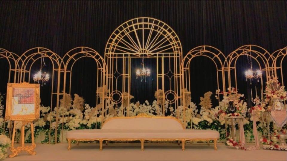 Product name:Gold Iron Floral Frame Backdrop for Wedding