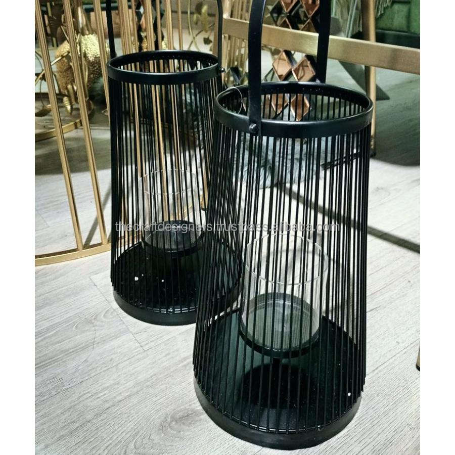 Circular Pillar Wire Candle Holder Jars Farmhouse Rustic Style Black Lanterns Vintage Candle Holder Set Rope Handle Metal Crafts