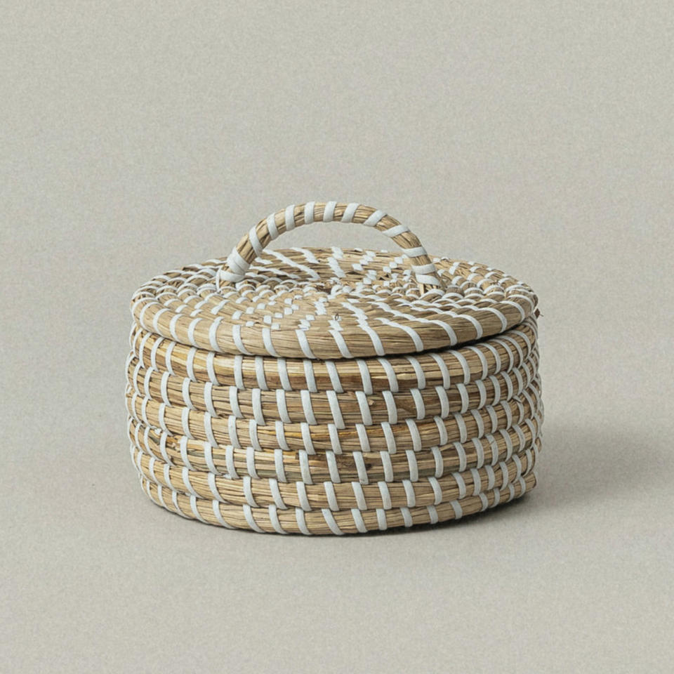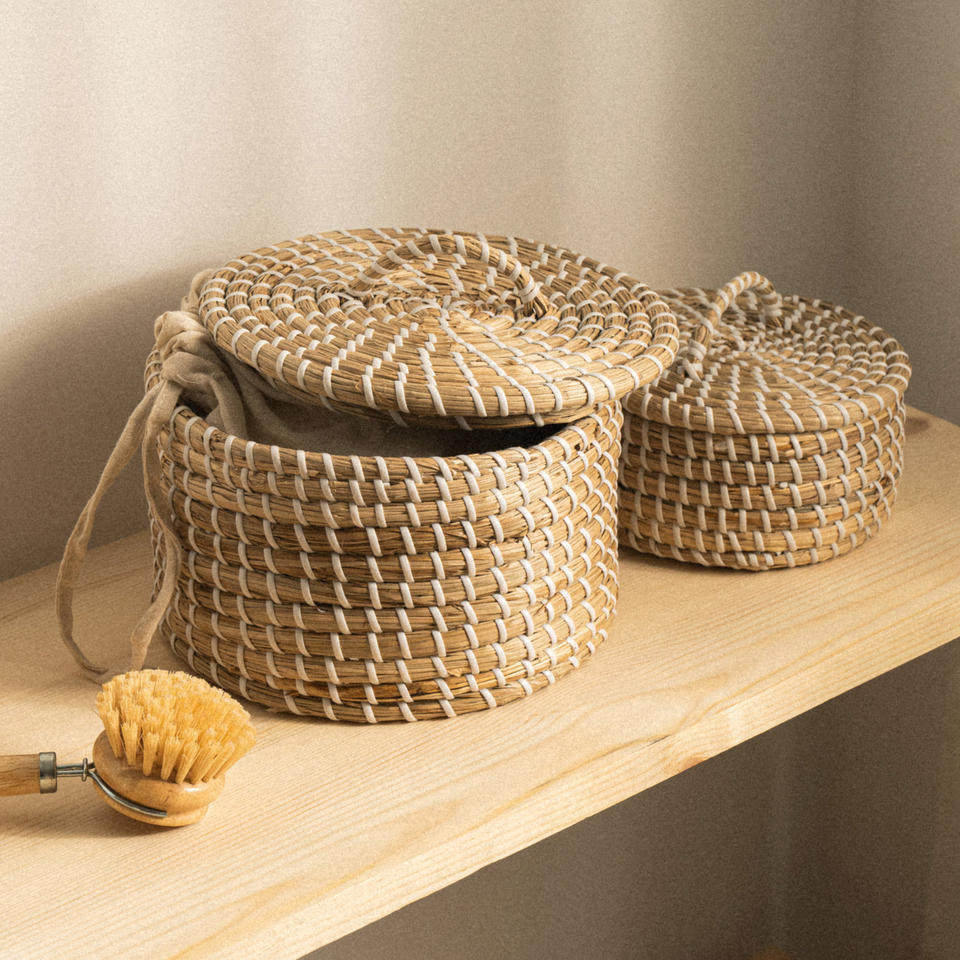 Circular seagrass boxes hot sales sea grass box container for candies food table storage decor