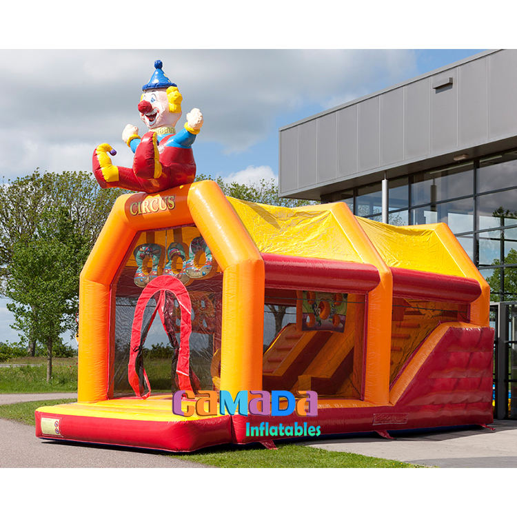 Circus Theme Inflatable Bouncy Castle and Wide Slide with Roof Customize Theme Park Playground for Kids and Adults