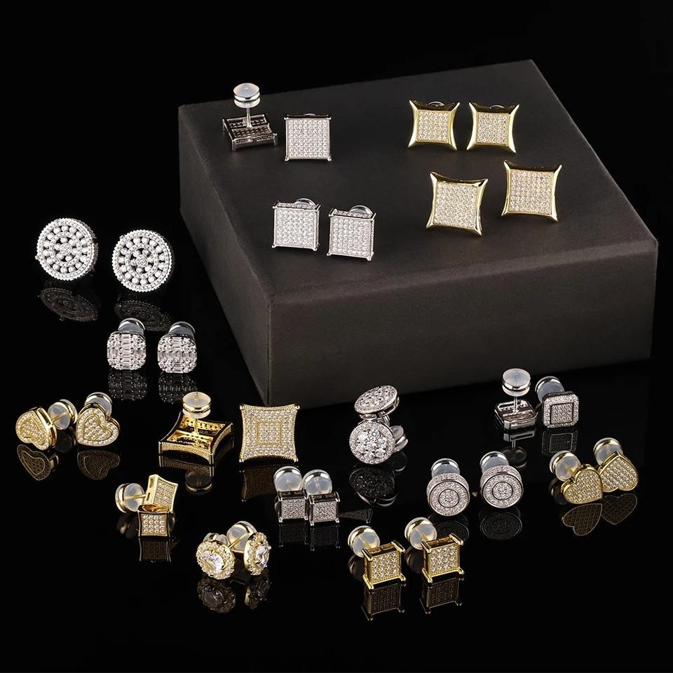 Cities Jewelry Wholesale18k Gold Plated 925 Sterling Silver Cz Diamond Mens Earring Stud Earrings for Men