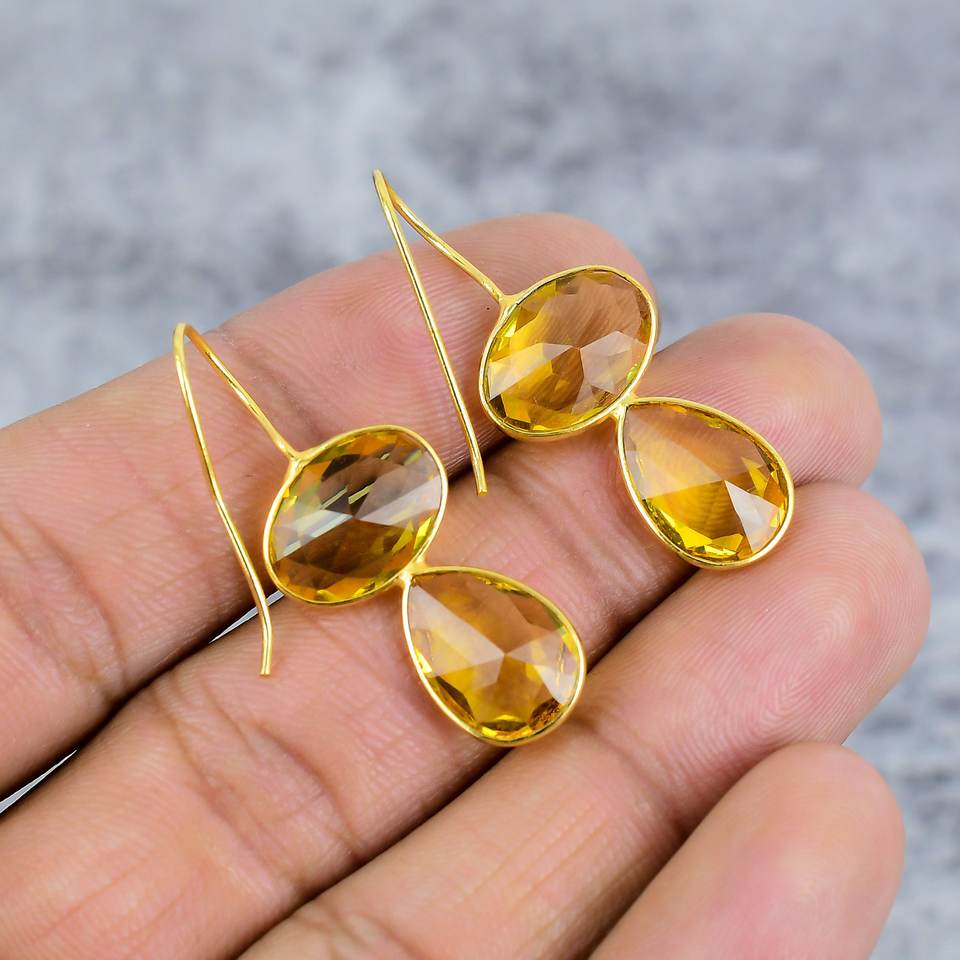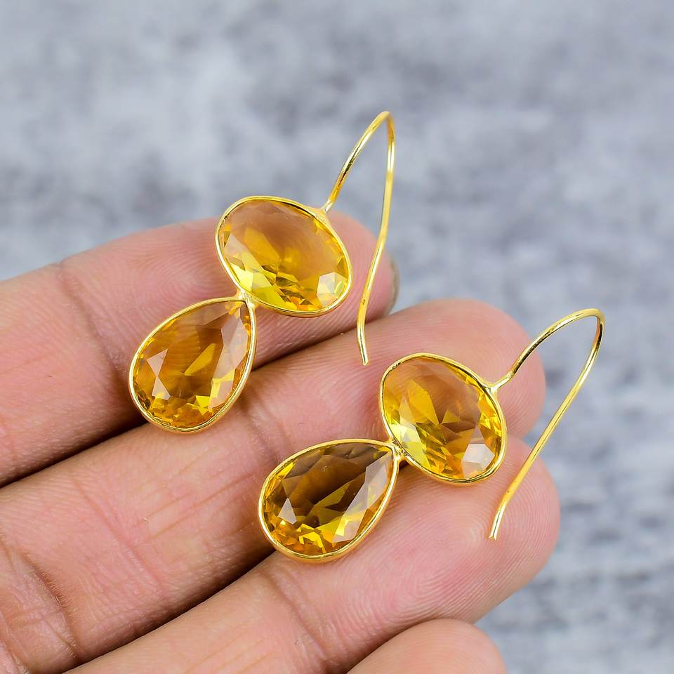 Citrine Gemstone Attach Wire Earring 925 Sterling Silver Gold Plated Fashionable Jewelry Earring Drops Party Gift Girlfriend