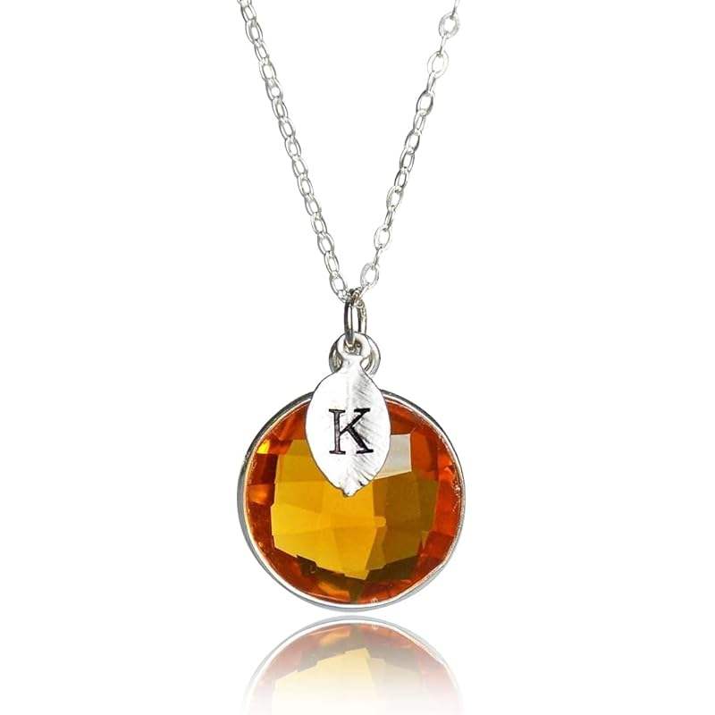 Citrine Bezel Pendant Necklace 14mm Faceted Stone Silver-Plated Handmade November Birthstone Jewelry Gift Gold Plated Setting