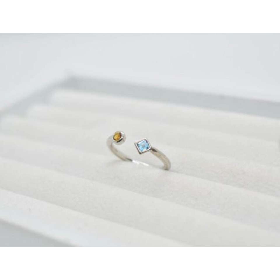 Citrine Blue Topaz 925 Sterling Silver Luxury Bezel Setting Wedding Ring Anniversary Party Gift Women Girls Gemstone