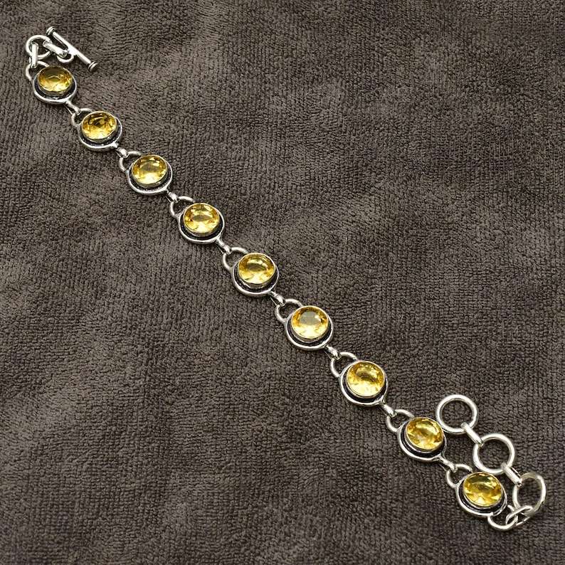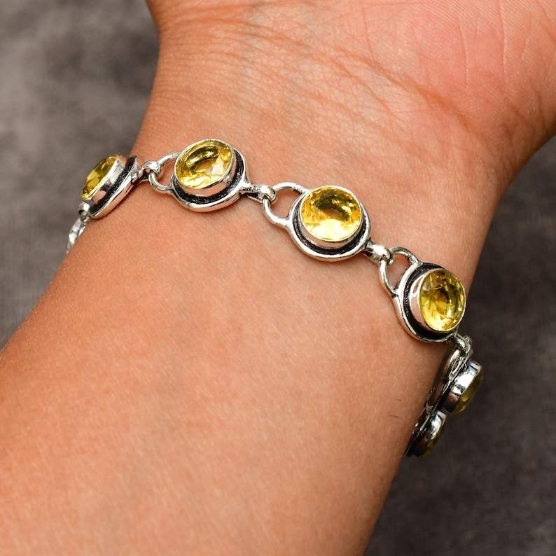 Citrine Gemstone Bracelet Handmade 925 Sterling Silver Jewelry Natural Yellow Stone Womens 7 Inch Bracelet Gift