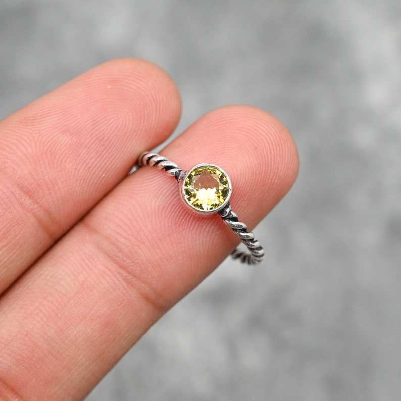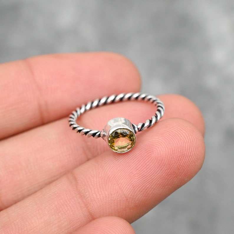 Citrine Gemstone Handmade 925 Sterling Silver Twisted Band Ring Single Stone Jewelry Gift