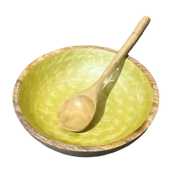 Citrine Glow Bowl Salad Bowl or Wooden with Serving Tongs Large for Fruits Cereal or Pasta Large Mixing Bowl Set