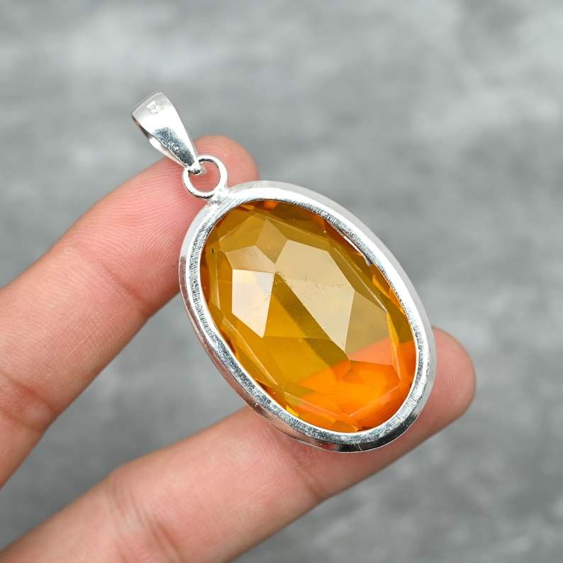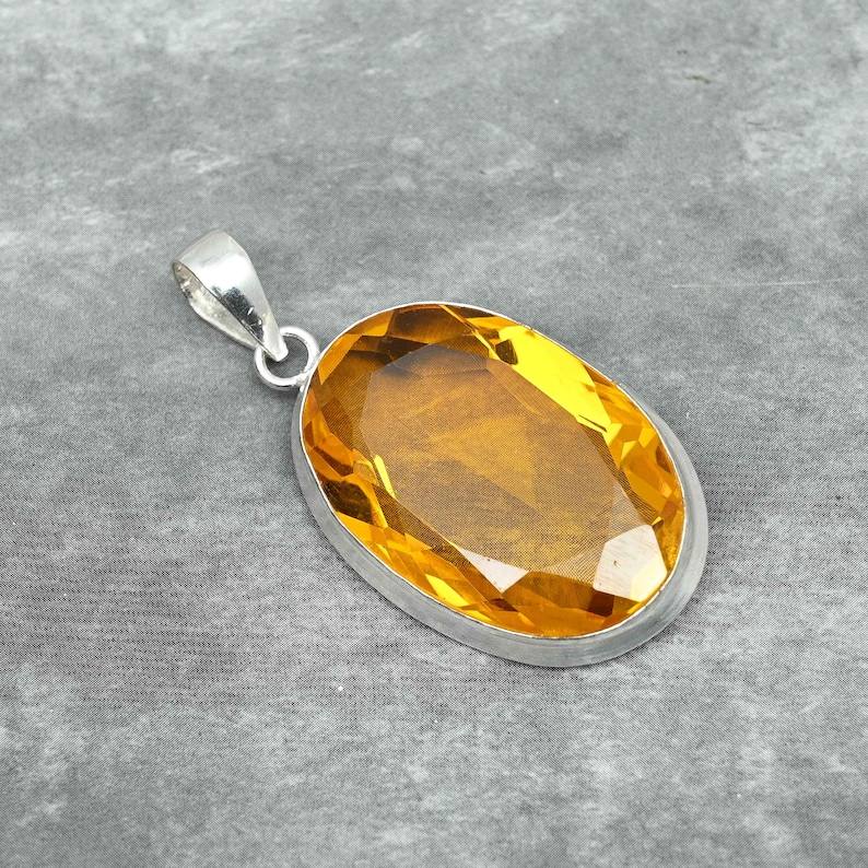 Vintage Citrine Pendant Necklace 925 Sterling Silver 14K Gold Plated Handmade Gemstone Jewelry Natural Citrine Elegant Women's