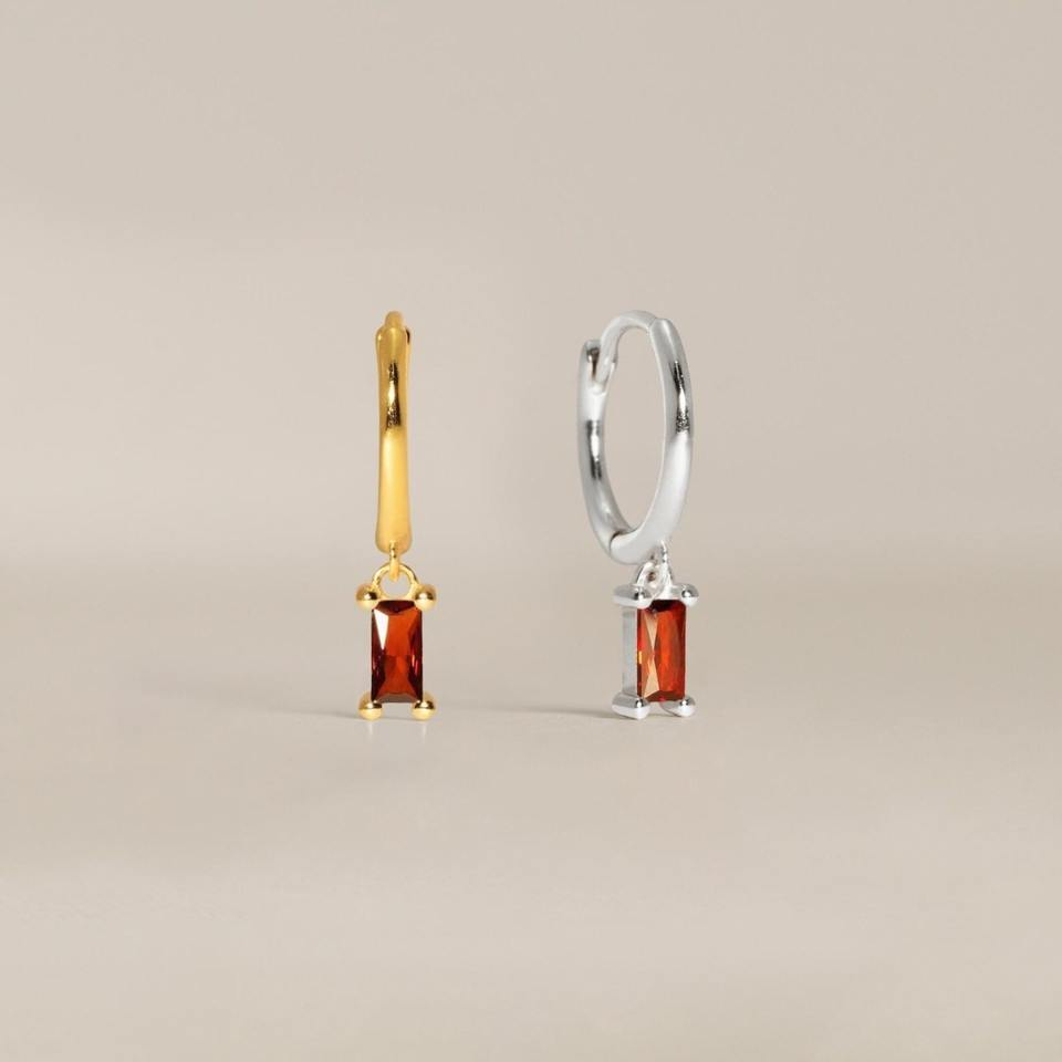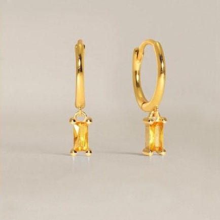 Citrine Quartz Dangle Hoop Earrings - 925 Sterling Silver Baguette Shape Gemstone Earring, Faceted Birthstone Women Jewelry