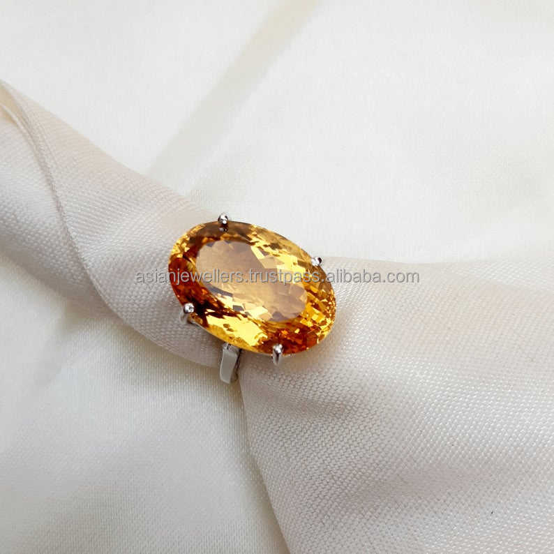 Citrine Quartz Gemstone ring in 925 Sterling Silver Beautiful handmade Gold Plated Fashion Jewelry