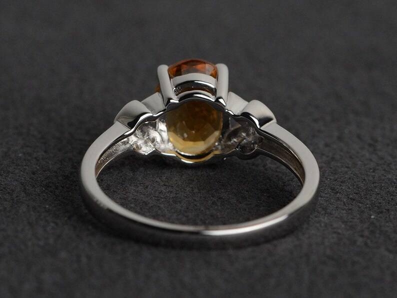 Citrine Ring Silver Yellow Gemstone Ring Oval Cut Engagement Ring November Birthstone Jewelry