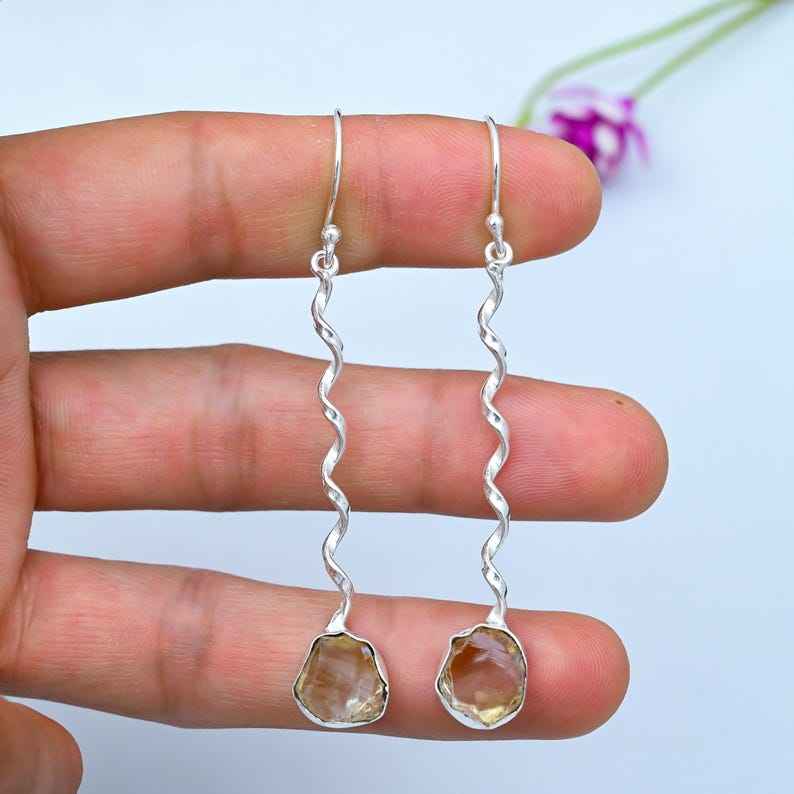 Citrine Rough Gemstone Handmade 925 Sterling Silver Drop Dangle Earrings Natural Jewelry Gift For Love
