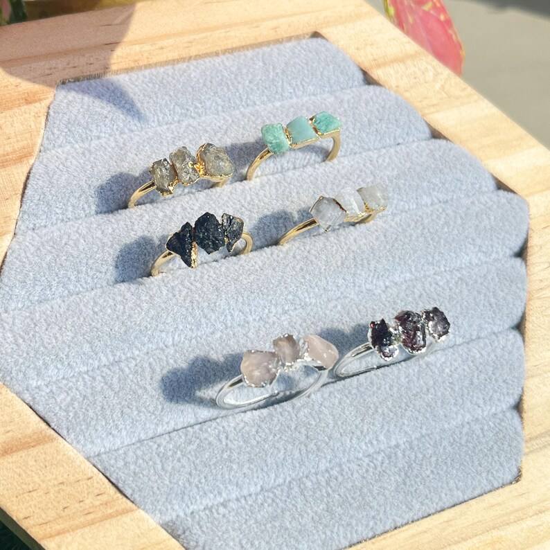Citrine Three Gemstone Ring Gold Electroplated Adjustable Ring Rough Stone Statement Women Ring