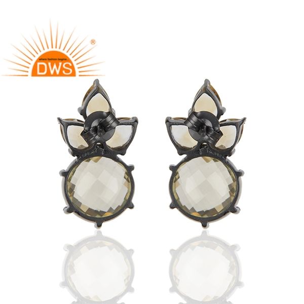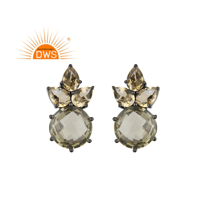 Citrine and Lemon Topaz Gemstone Earrings Wholesale Rhodium Plated 925 Silver Stud Earrings For Women Classic Collection