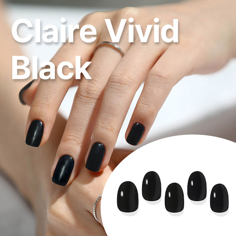 Claire Vivid Black InstaWrap - No-Lamp Gel Nail Stickers, Peel & Stick, Instant Salon Look (32PCS)