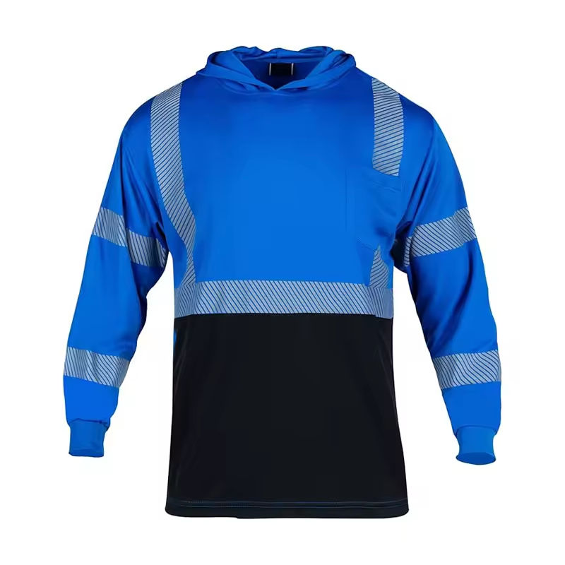 Class 3 Fluorescent High Visibility Long Sleeve Safety Shirt with Hood Reflective Workwear Customizable Logo by ZOHAN CREATIONS