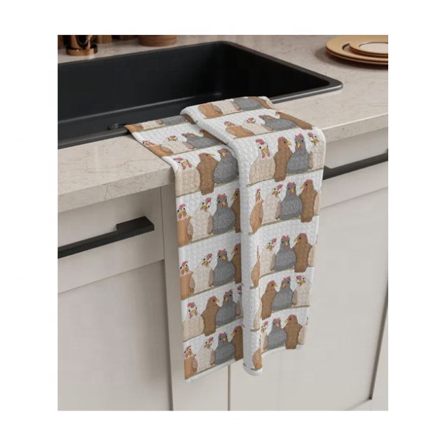 Classic 100% Cotton Eco Certified Sitting Hens Embroidered 550GSM Ultra Absorbent Anti Wrinkle Superior Quality Kitchen Towel