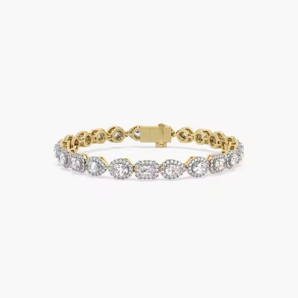 Classic 14K Gold Tennis Bracelet Dainty Wedding Jewelry with Moissanite and Diamond Perfect Party Gift