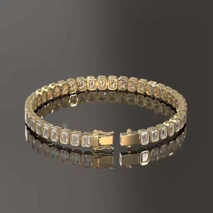 Classic 14K Yellow Gold Plated Diamond Moissanite Tennis Bracelet Dainty Wedding Jewelry Perfect Bridesmaid Gift