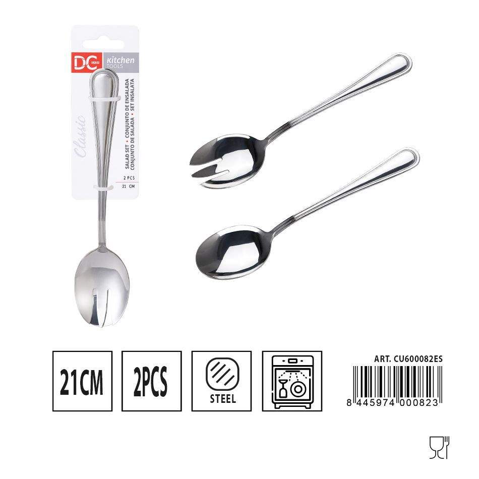 Classic 2-Piece 21 cm Salad Server Set Metal Tableware for Serving in Kitchen