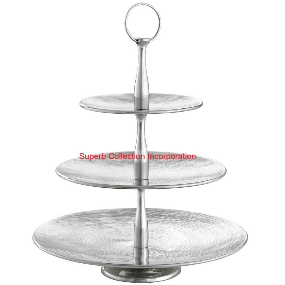 Classic 3 Tier Silver Metal Cake Stand With Handle For Wedding And Party Dessert Display Stainless Steel Cupcake Serving Platter