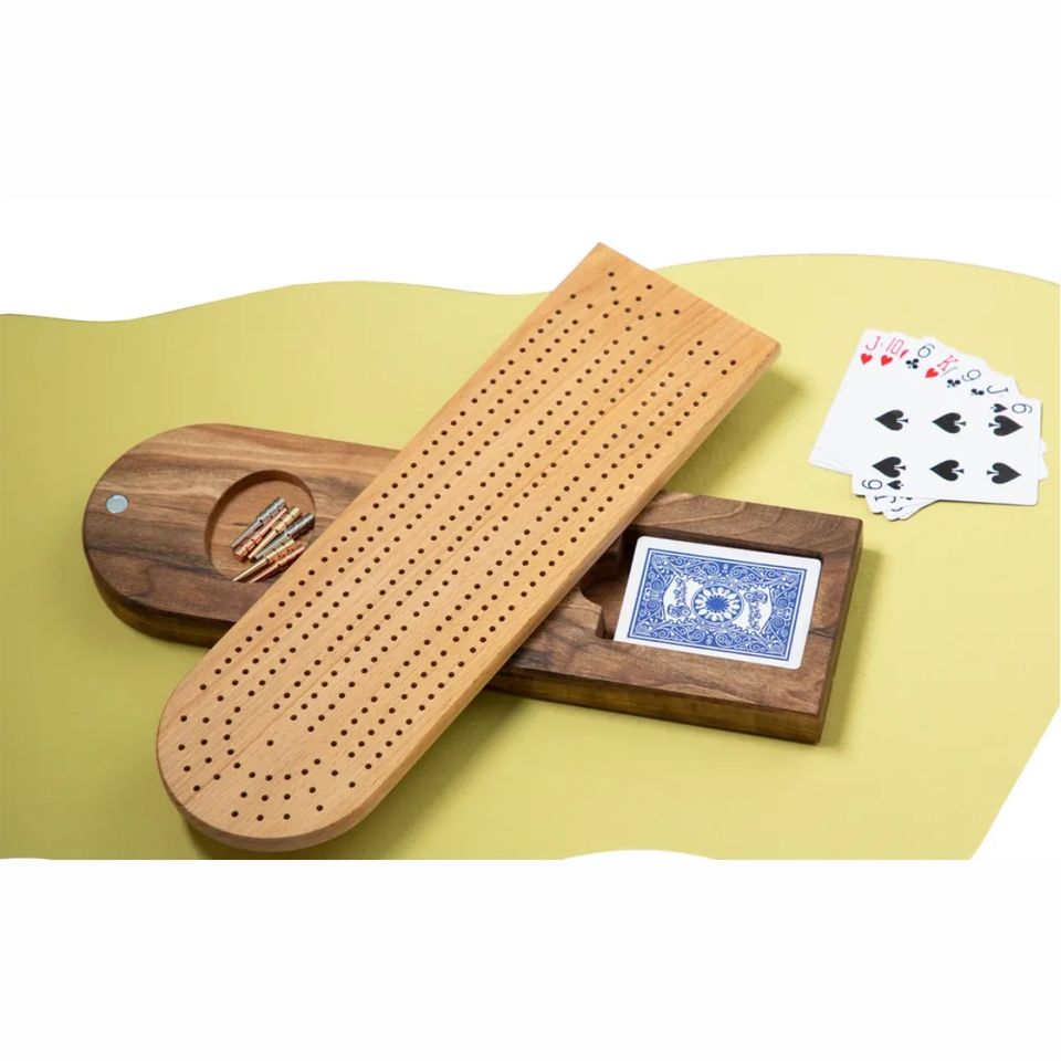 Classic 3-Track Continuous Cribbage Game Board with Metal Pegs and Playing Cards Perfect Gift for Adults & Family Game Night