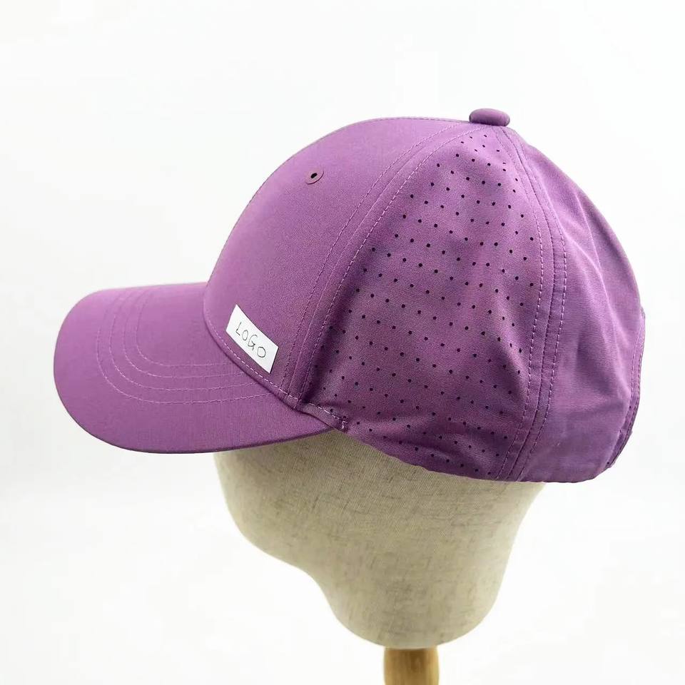 Classic 5 Panel Canvas Baseball Hat with Embroidered Logo Perforated Laser Cut Hole Waterproof Sport Trucker Cap Headwear