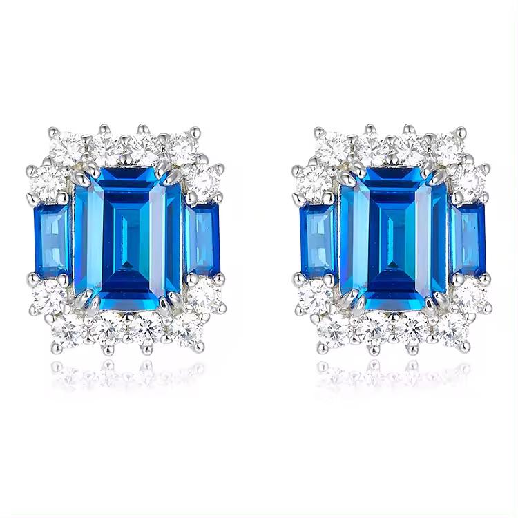Classic 925 Silver Blue Cubic Zirconia Luxury Earrings for Women