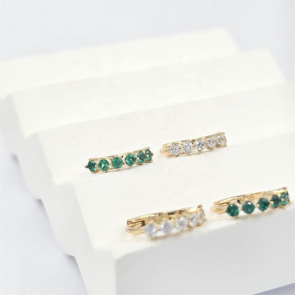 Classic 925 Silver Huggie Hoop Earrings 12mm Polished Geometric Pattern with Zircon Fashionable Jewelry Gift for Women