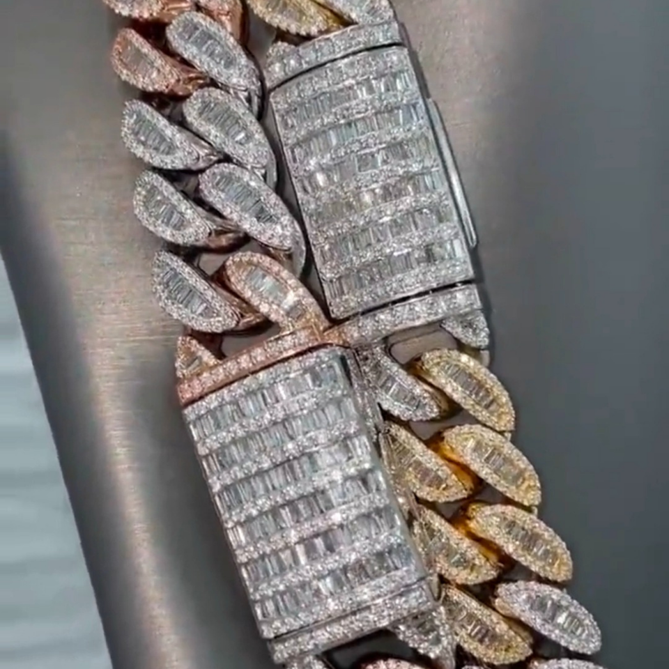 Classic 925 Sterling Silver Customized Iced Out Diamond New Fashion Cluster Chain with White Diamonds Unisex Hip Hop Style Chain