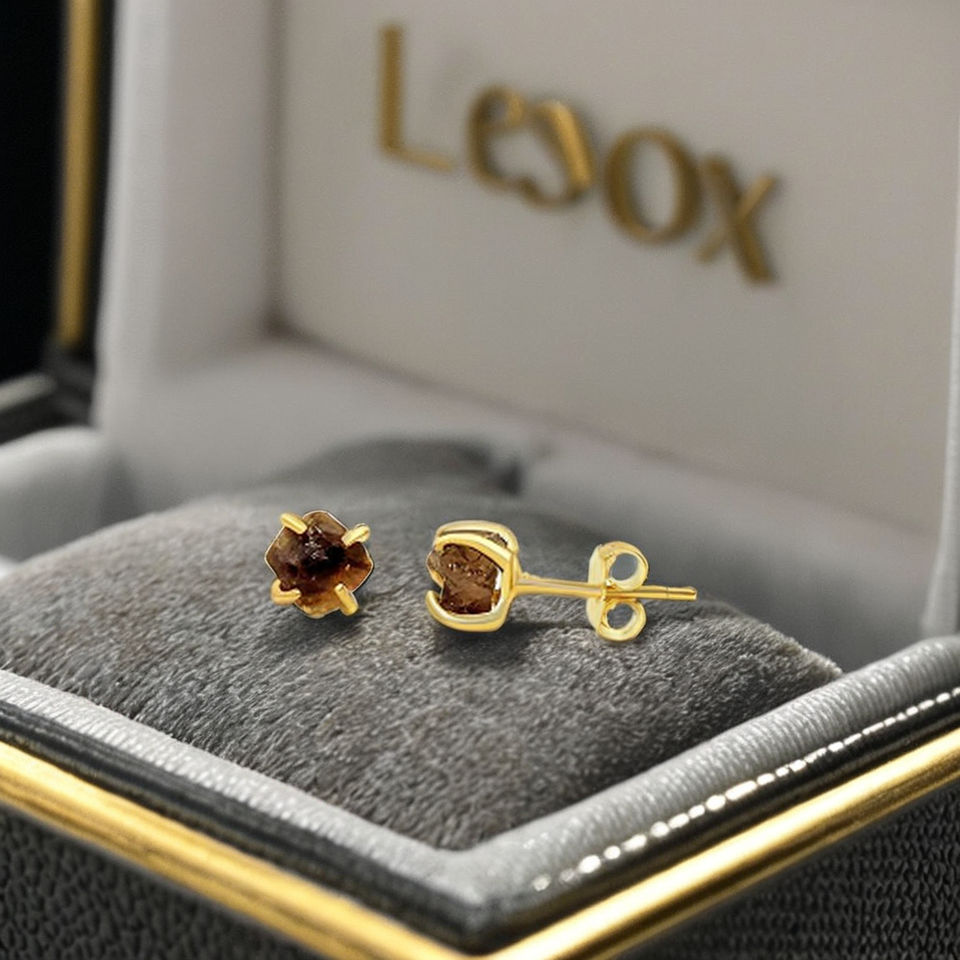 Classic 925 Sterling Silver Gold Plated Handmade 5-7mm Raw Smoky Quartz Stud Earrings Natural Gemstone Jewelry for Women Gift