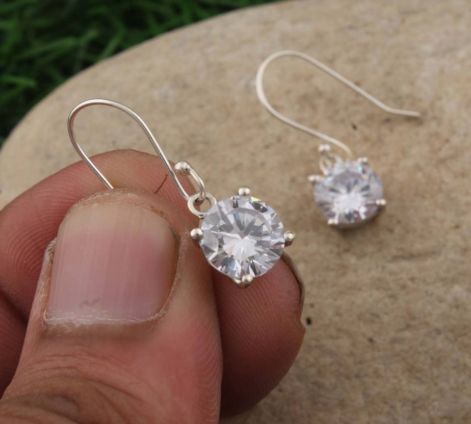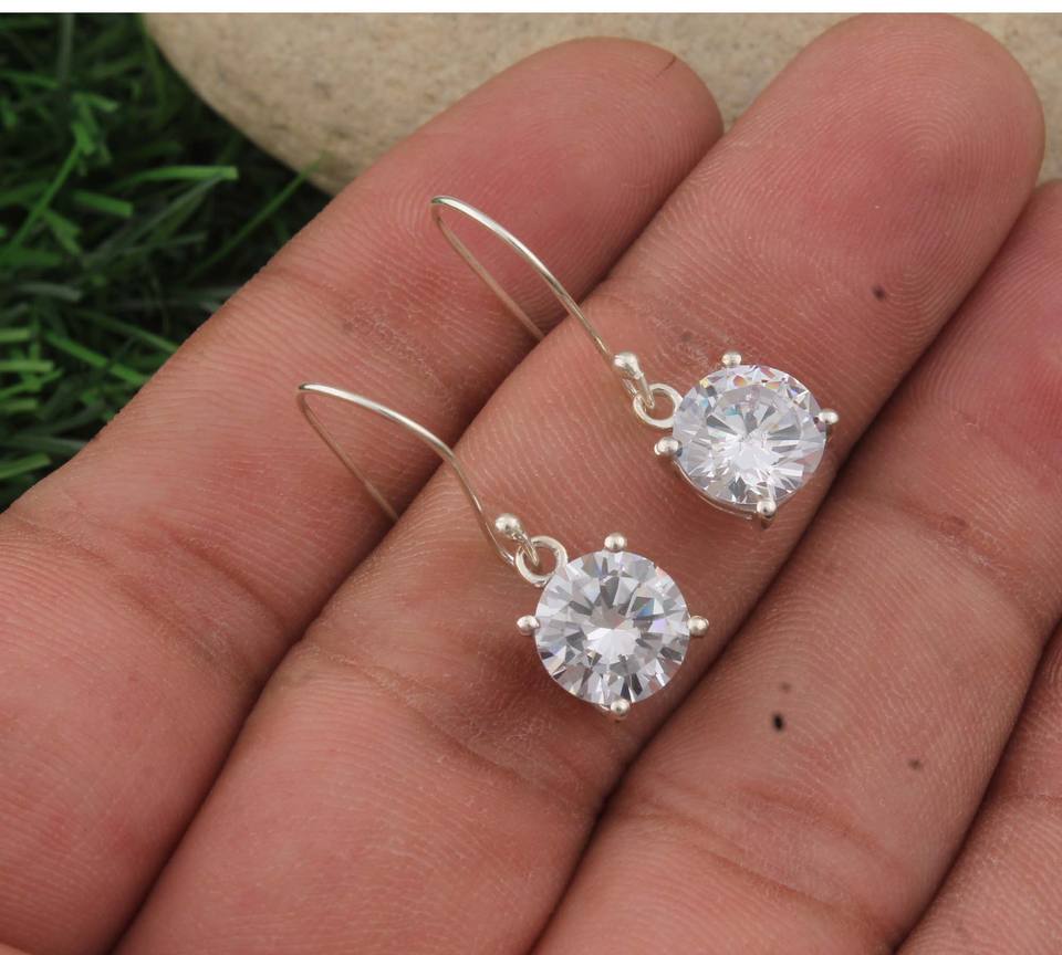 Classic 925 Sterling Silver Drop CZ Earrings Zirconia Brilliant Cut 4-Prong Solitaire Water Drop Shape Women Wedding Daily Wear