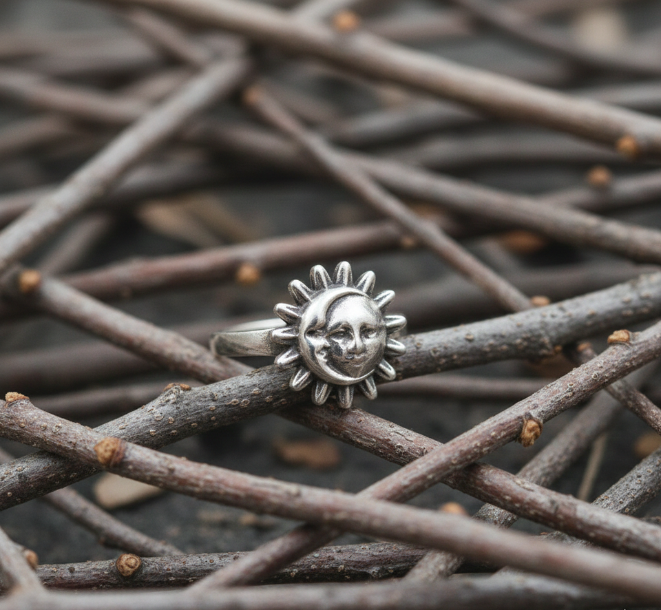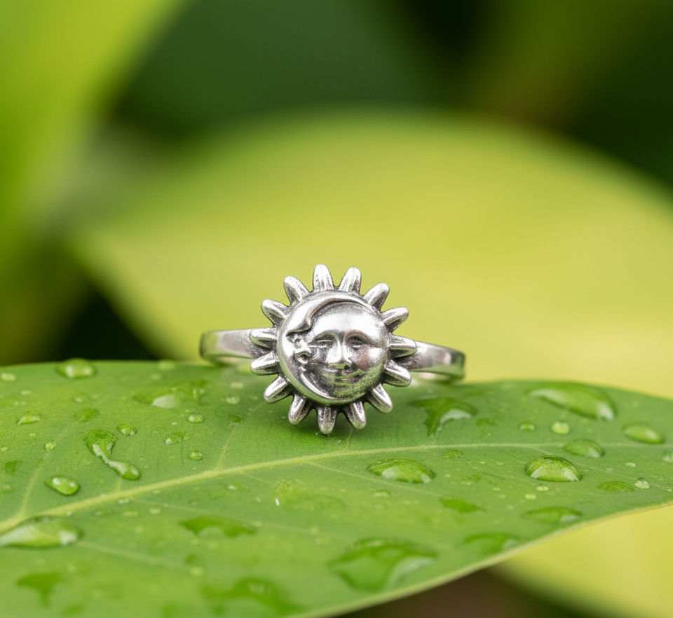 Classic 925 Sterling Silver Sun Moon Face Women's Ring Band Jewelry for Party Occasions Nickel-Free & Lead-Free