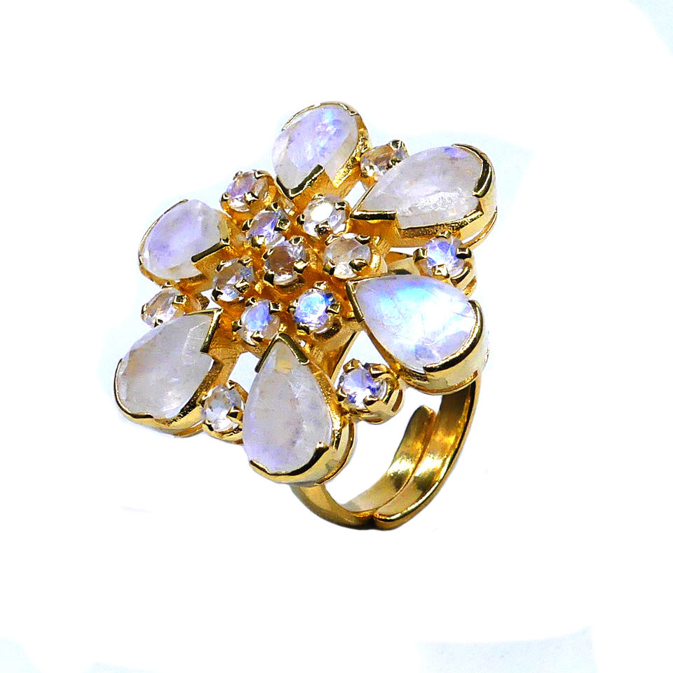 Classic 925 Sterling Silver Women's Ring Fashionable Gold Plated White Rainbow Moonstone Gemstone Made Stainless Steel for