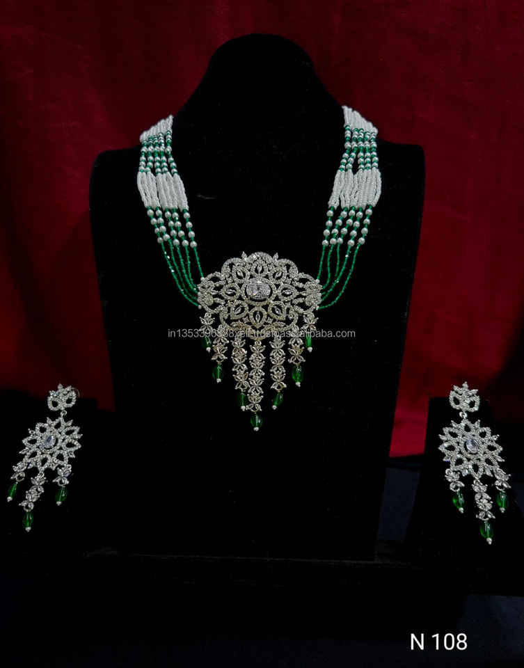 Classic American Diamond Bridal Jewelry Set Two-Piece Necklace and Earrings for Wedding Fashionable Classic Style