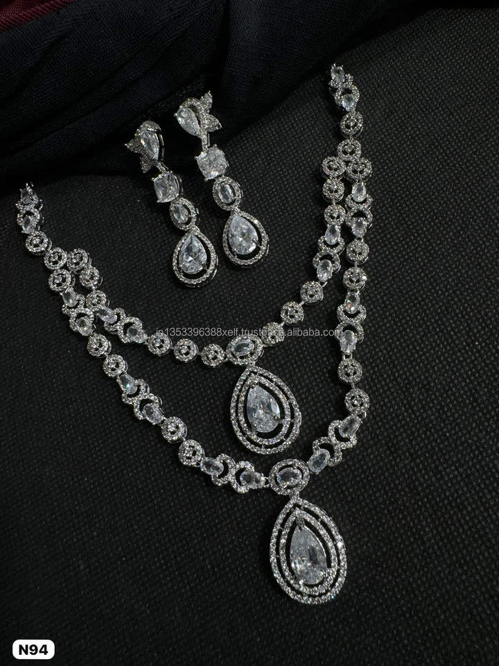 Classic American Diamond Bridal Jewelry Set Two-Piece Necklace and Earrings for Wedding Fashionable Classic Style