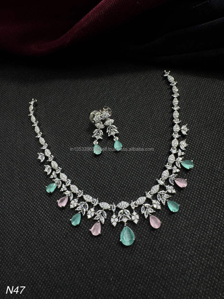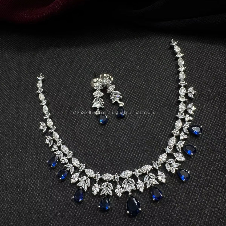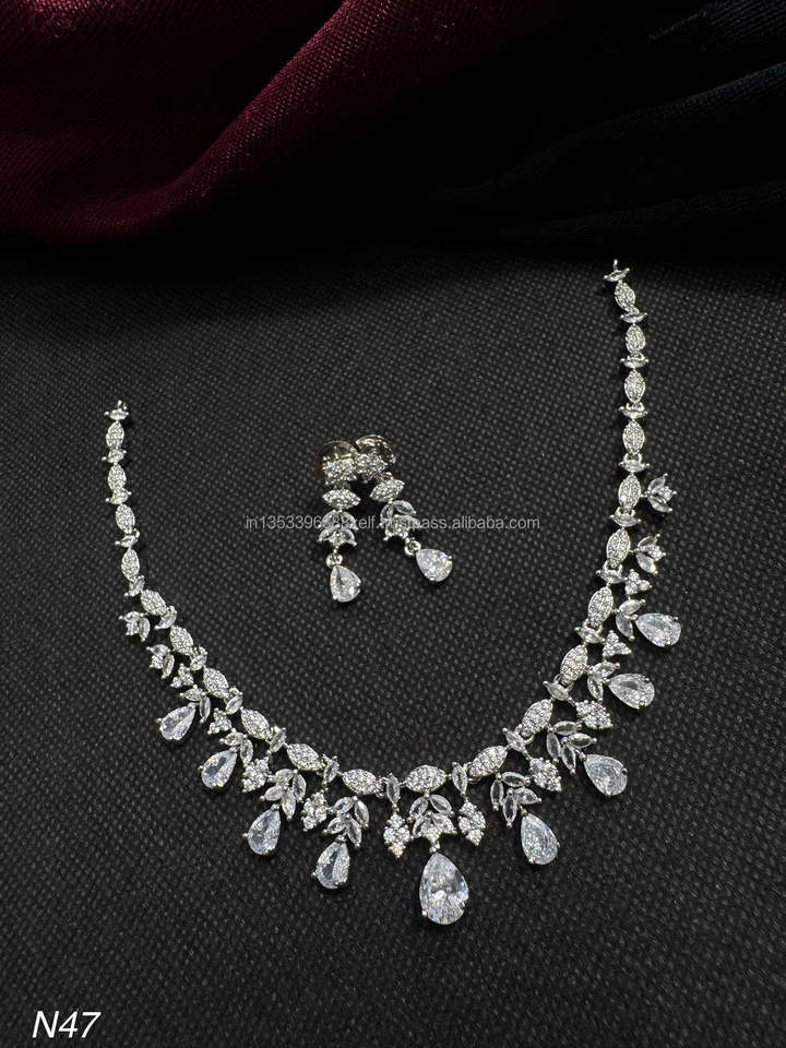 Classic American Diamond Bridal Jewelry Set Two-Piece Necklace and Earrings for Wedding Fashionable Classic Style