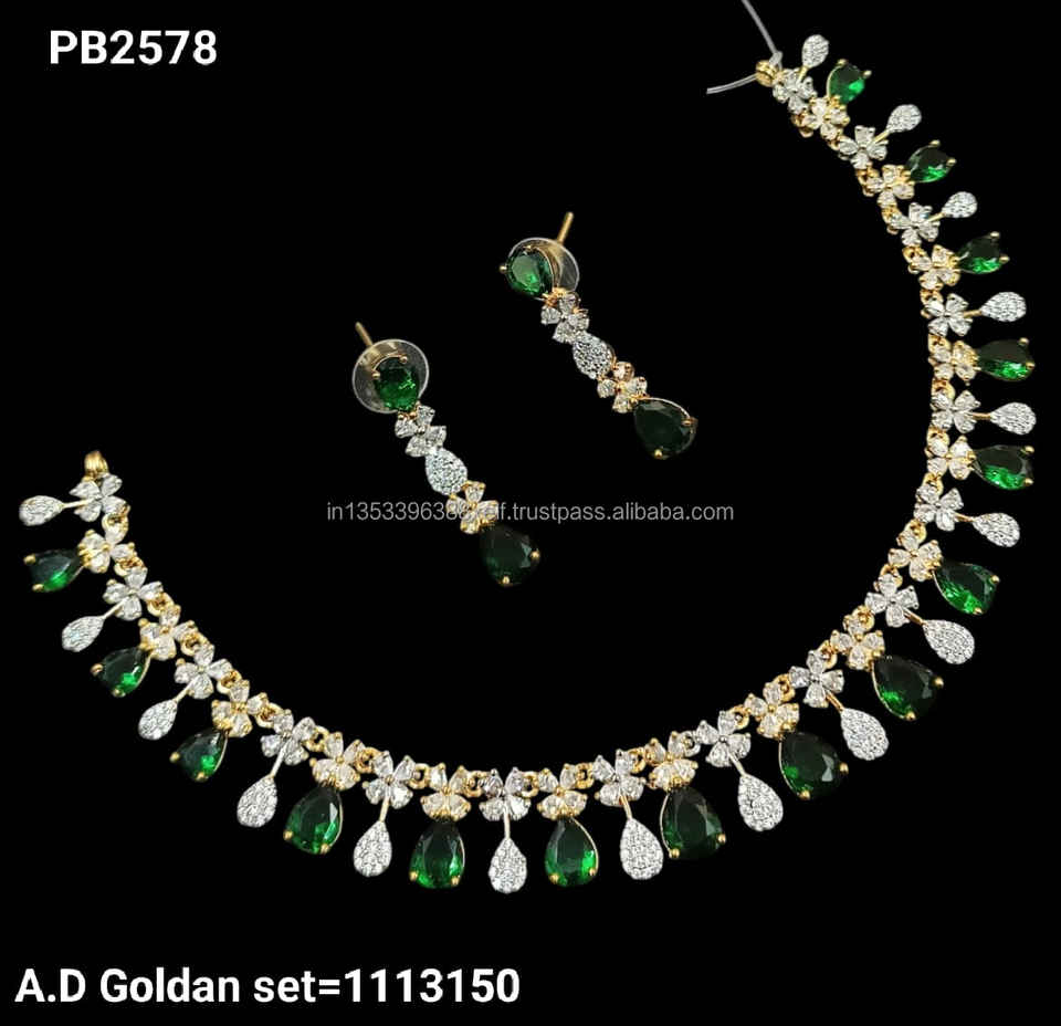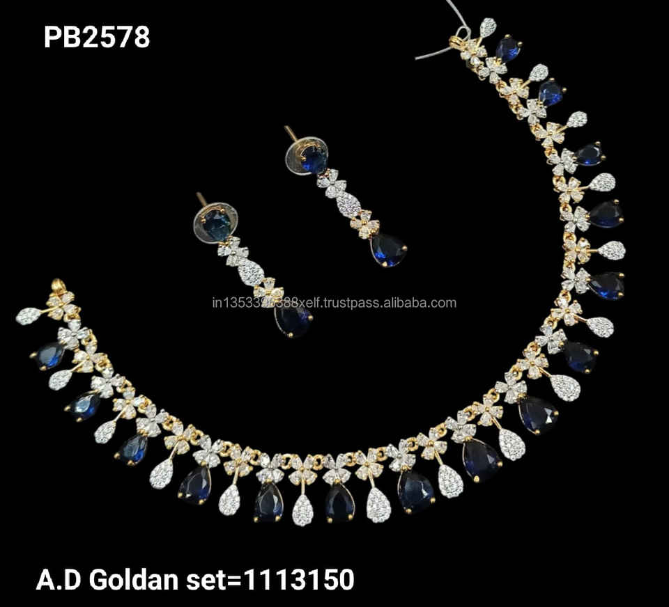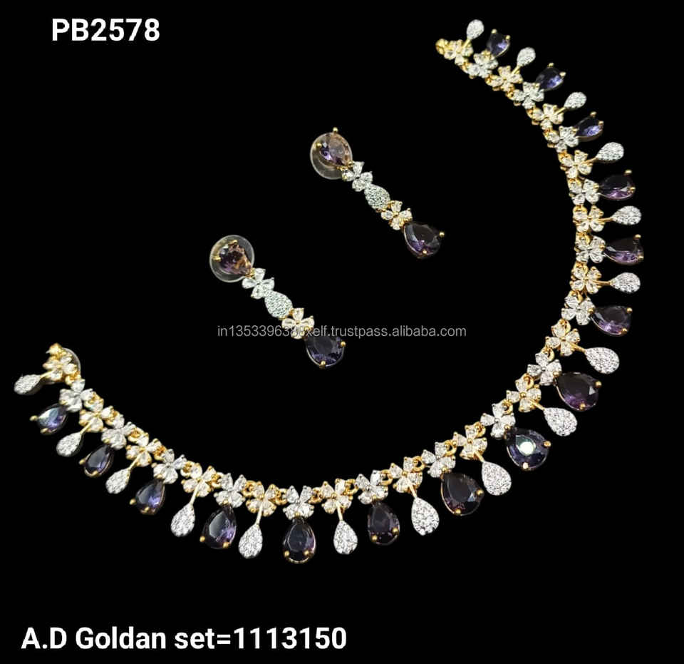 Classic American Diamond Single Line Sliver Plated Drop Shape Diamond Necklace Set With Earring Jewellery Set Gift for Women