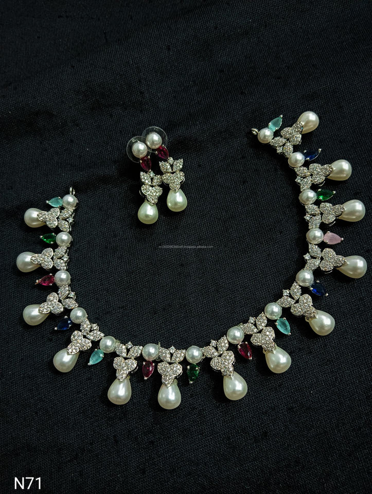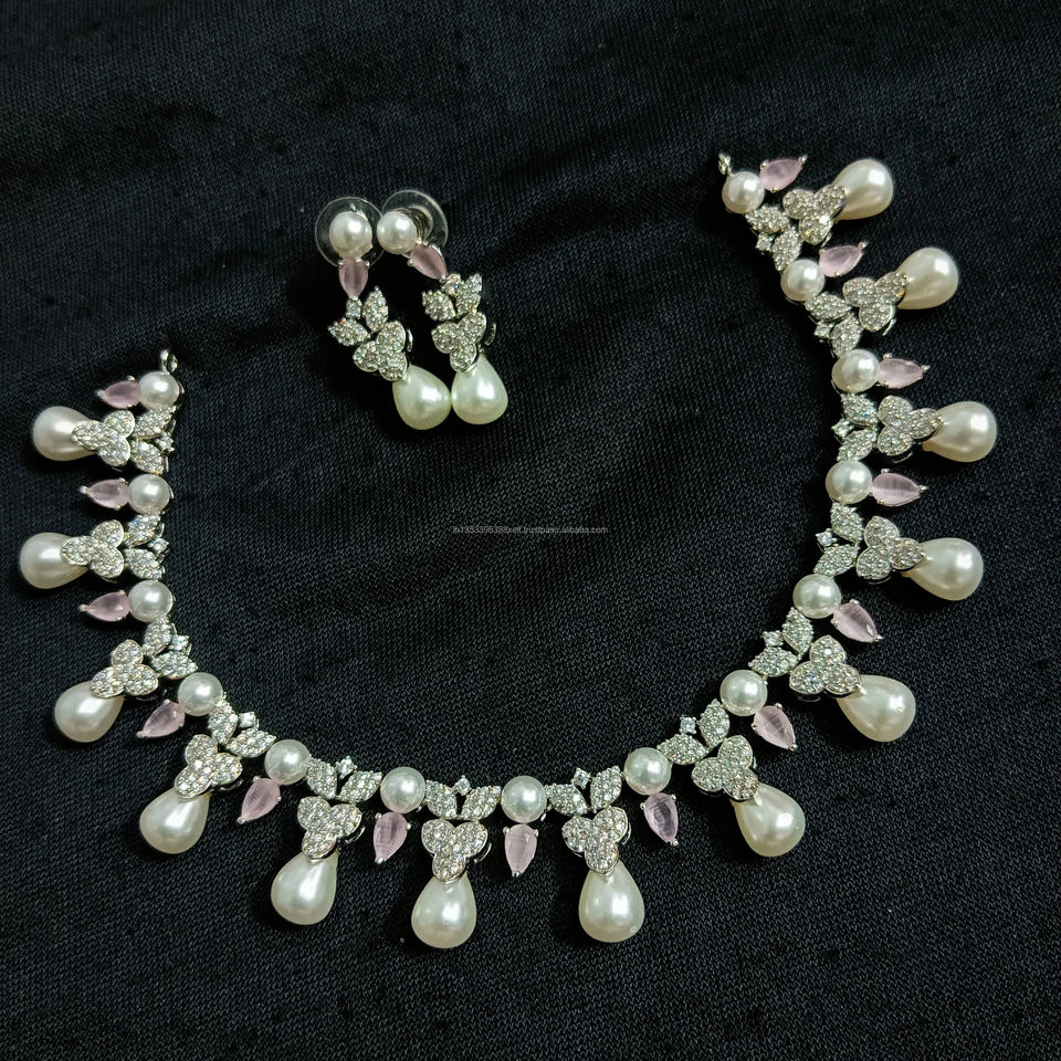 Classic American Ethnic Diamond Bridal Jewelry Set Two-Piece Necklace and Earrings for Wedding and Party in Classic Style