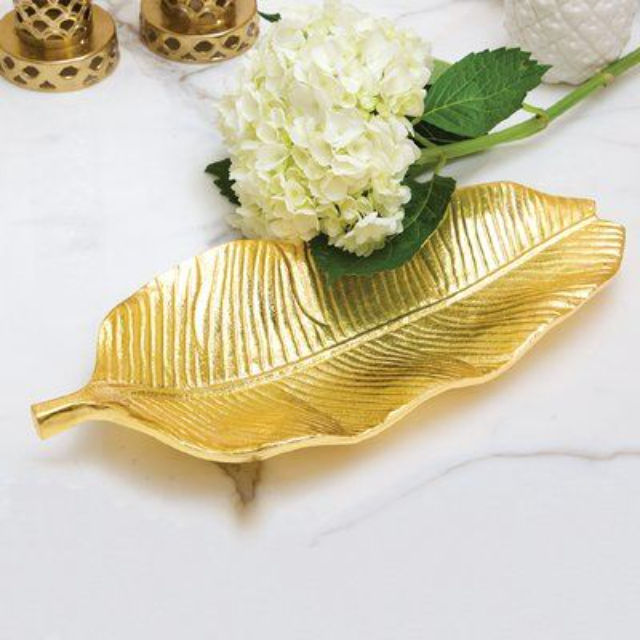 Classic Antique Leaf Inspired Metal Serving Tray With Textured Design For Fruit Display Or Elegant Dessert Presentation