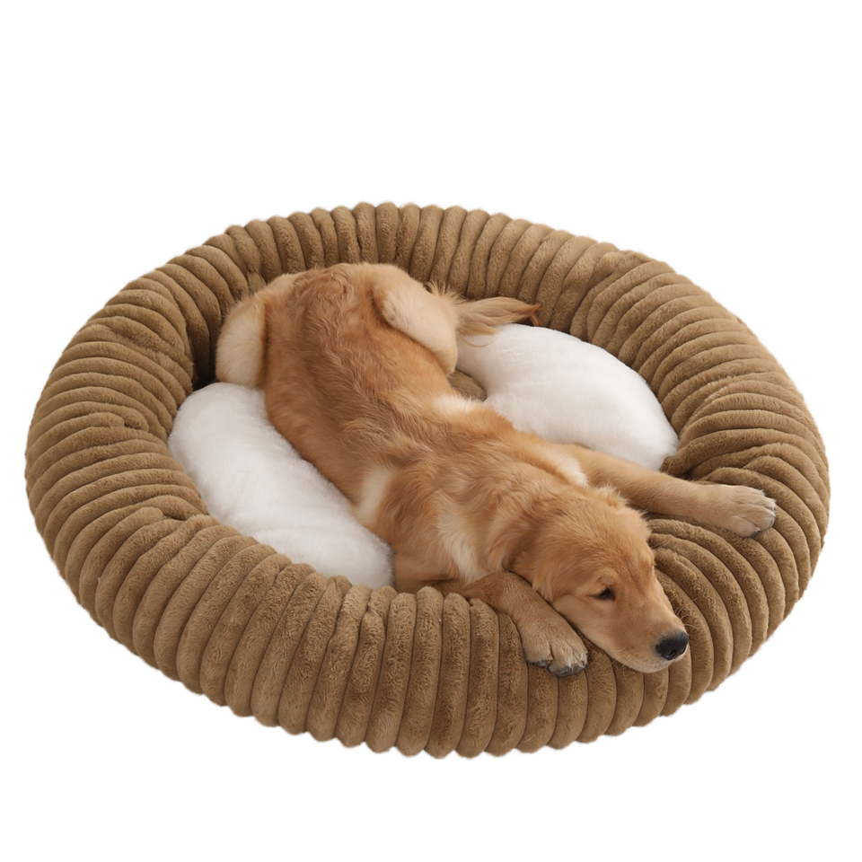 Classic Antiskid Pet Bed with New Design Winter Warm Donut Nest Machine Washable Solid Corduroy for Small Medium Cats Dogs