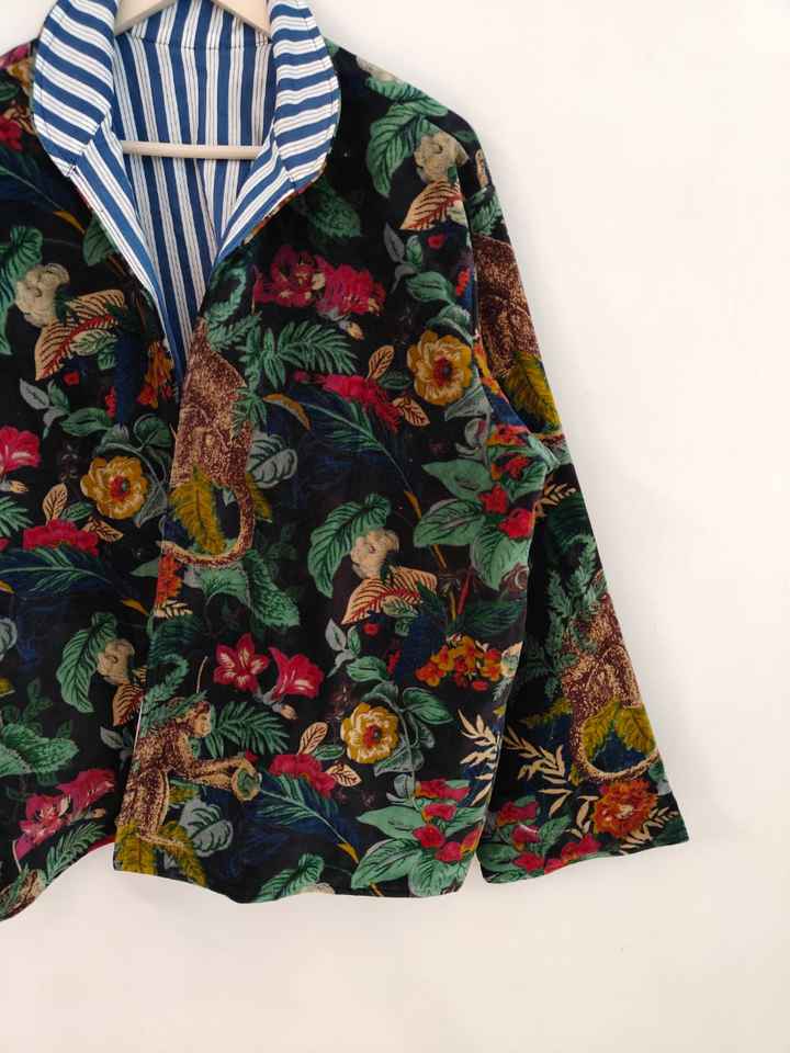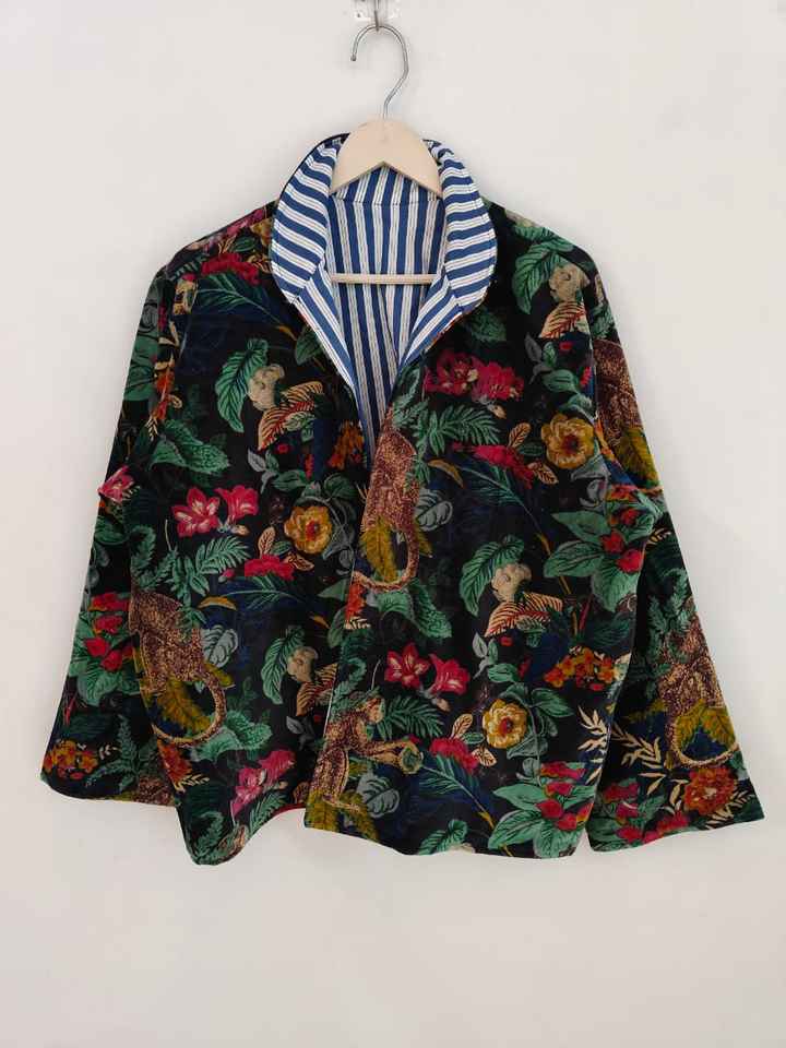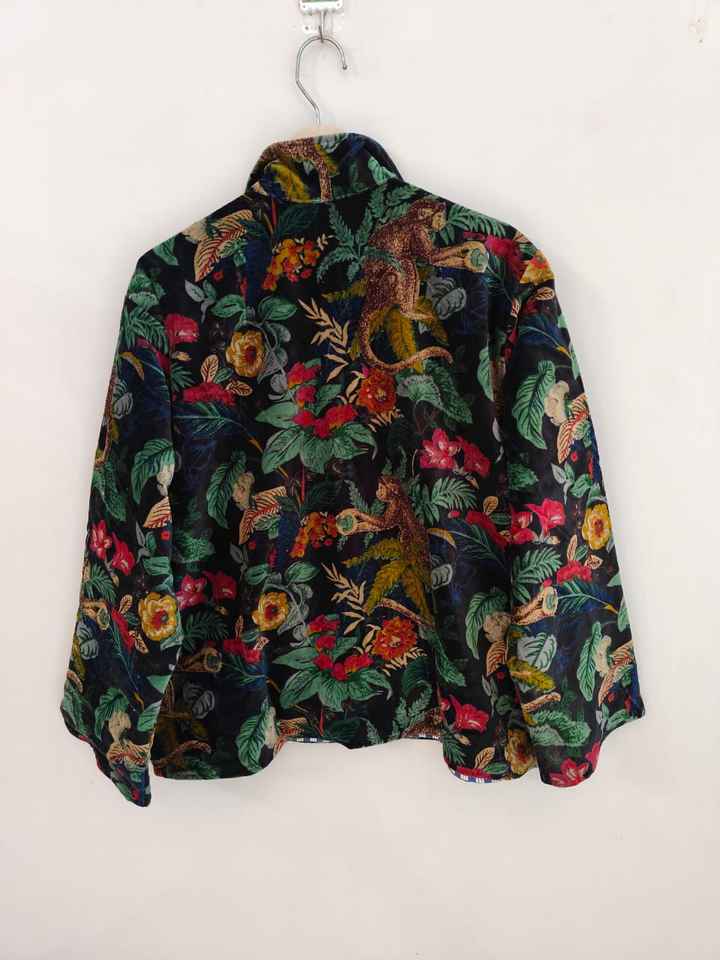 Classic Art & Craft Breathable Cotton Velvet Bomber Jacket for Women Floral Print Winter Bridal Bridesmaid Coat