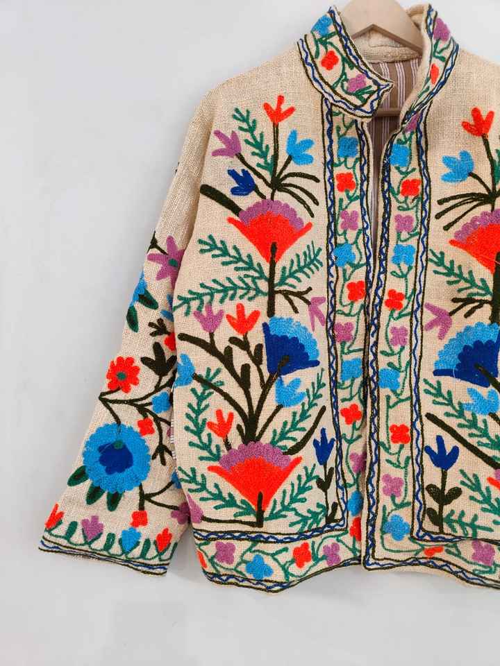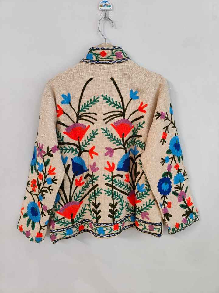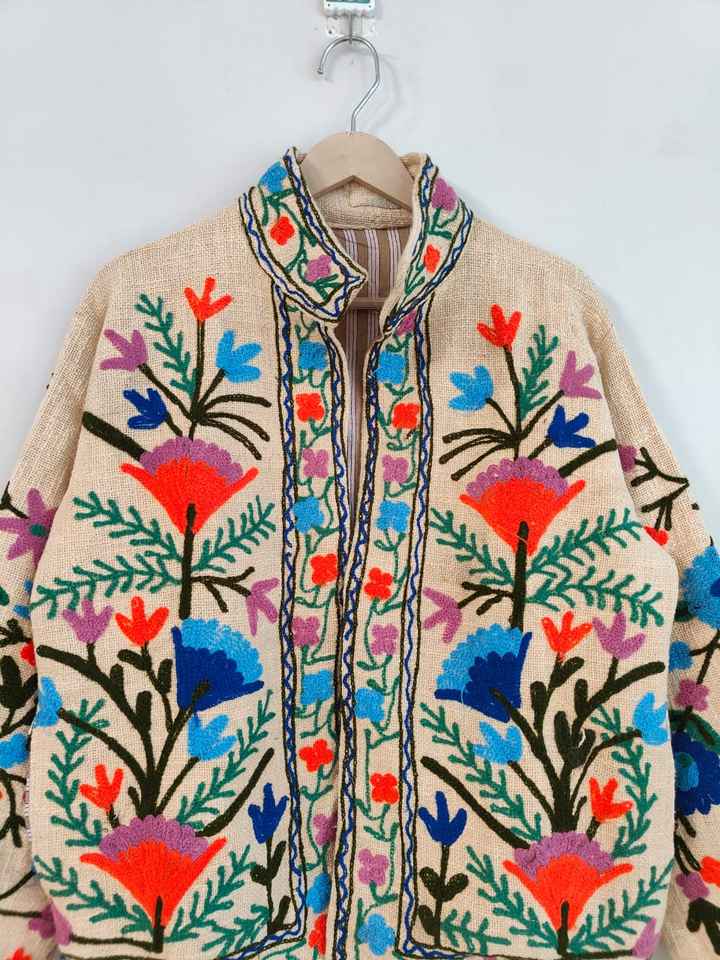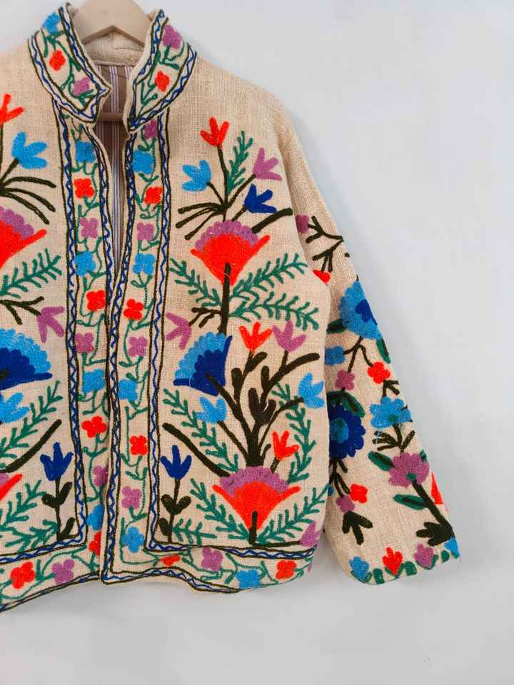 Classic Art Craft Handmade Embroidered Bohemian Suzani Bomber Jacket Reversible Breathable Eco-Friendly Short Sleeve Jacket
