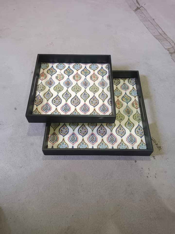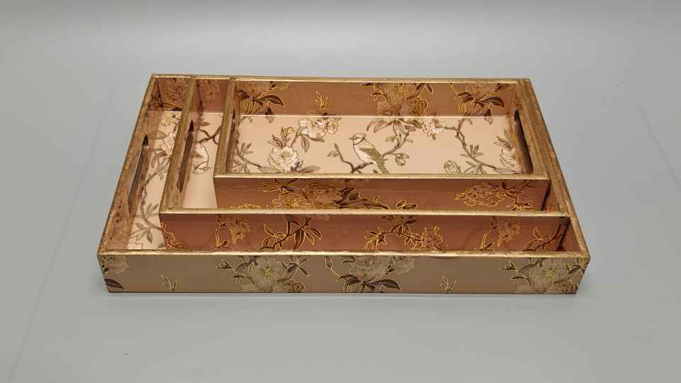 Classic Art Enamel Printed Wooden Tray Set Stylish Serving Trays with Elegant Plant Pattern for Decorative and Functional Use