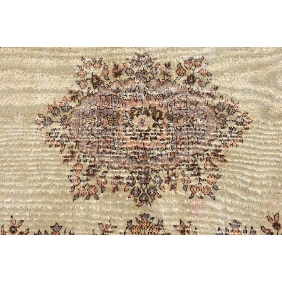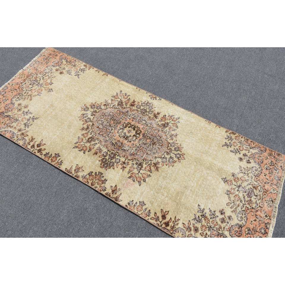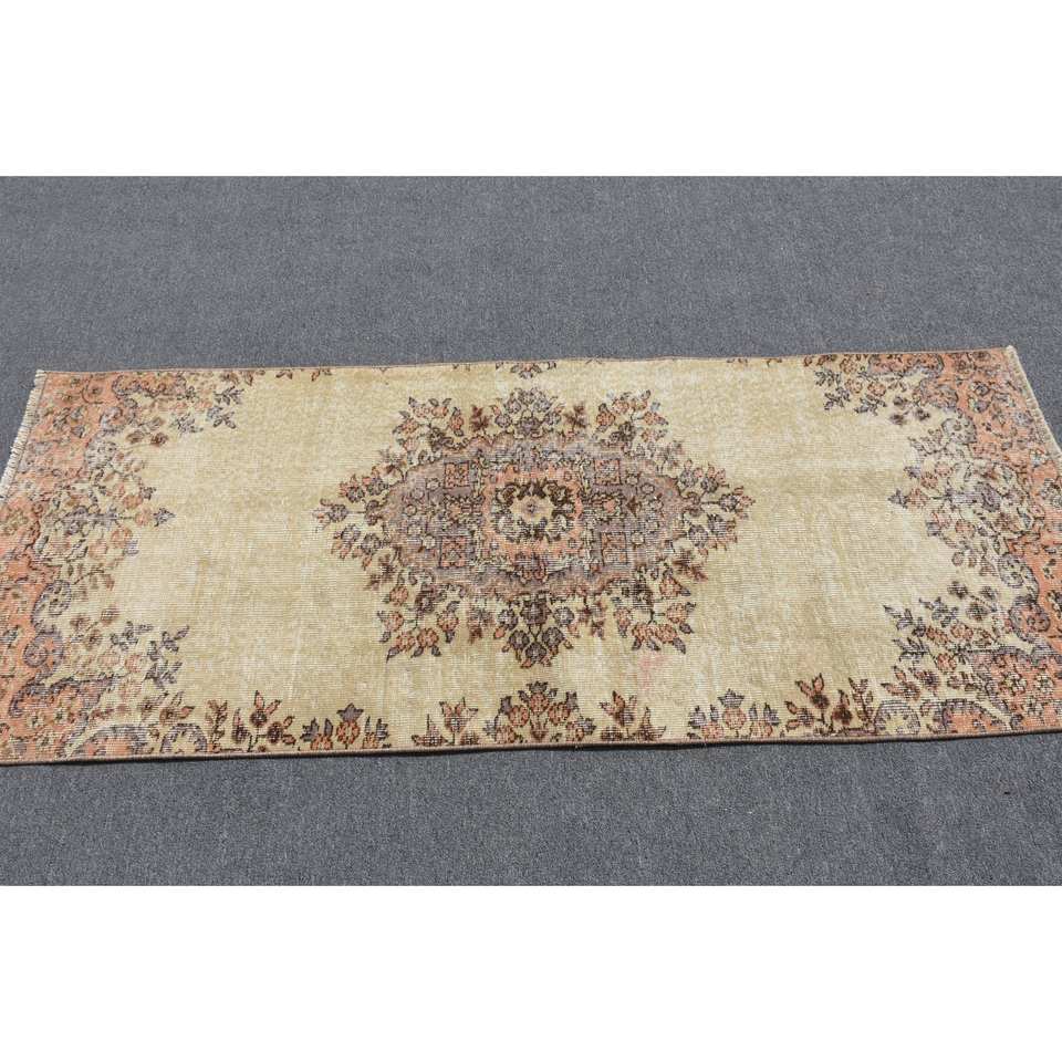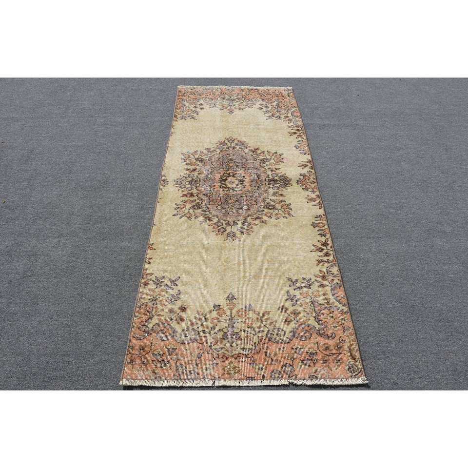 Classic Beige 2.7 X 6.5ft Woolen Turkish Rug Patchwork Design for Entryway Living Room Bedroom Rectangular Hallway Shape Latex
