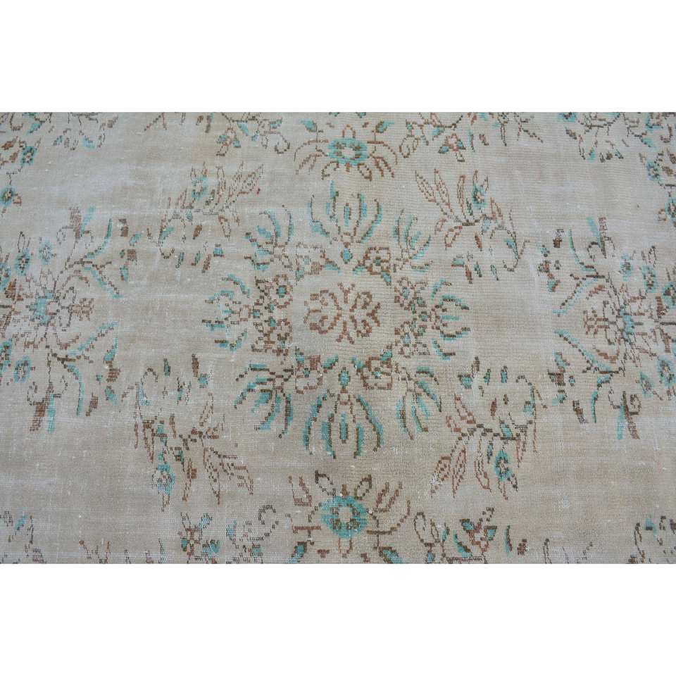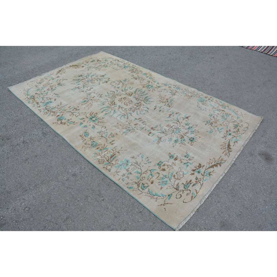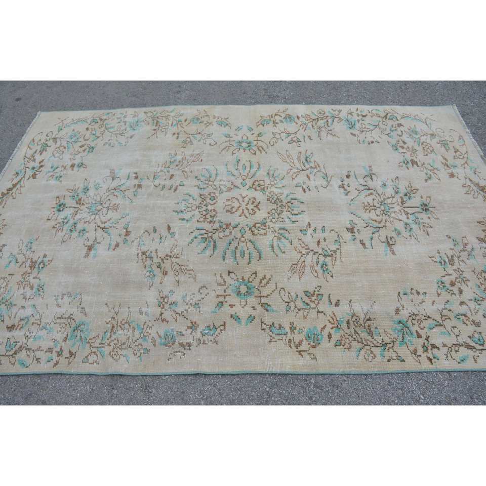 Classic Beige Blue Vintage Turkish Rug 5.2 X 8.3ft Handmade Eco Friendly Medium Pile Patchwork Design Wool Bamboo Silk Material