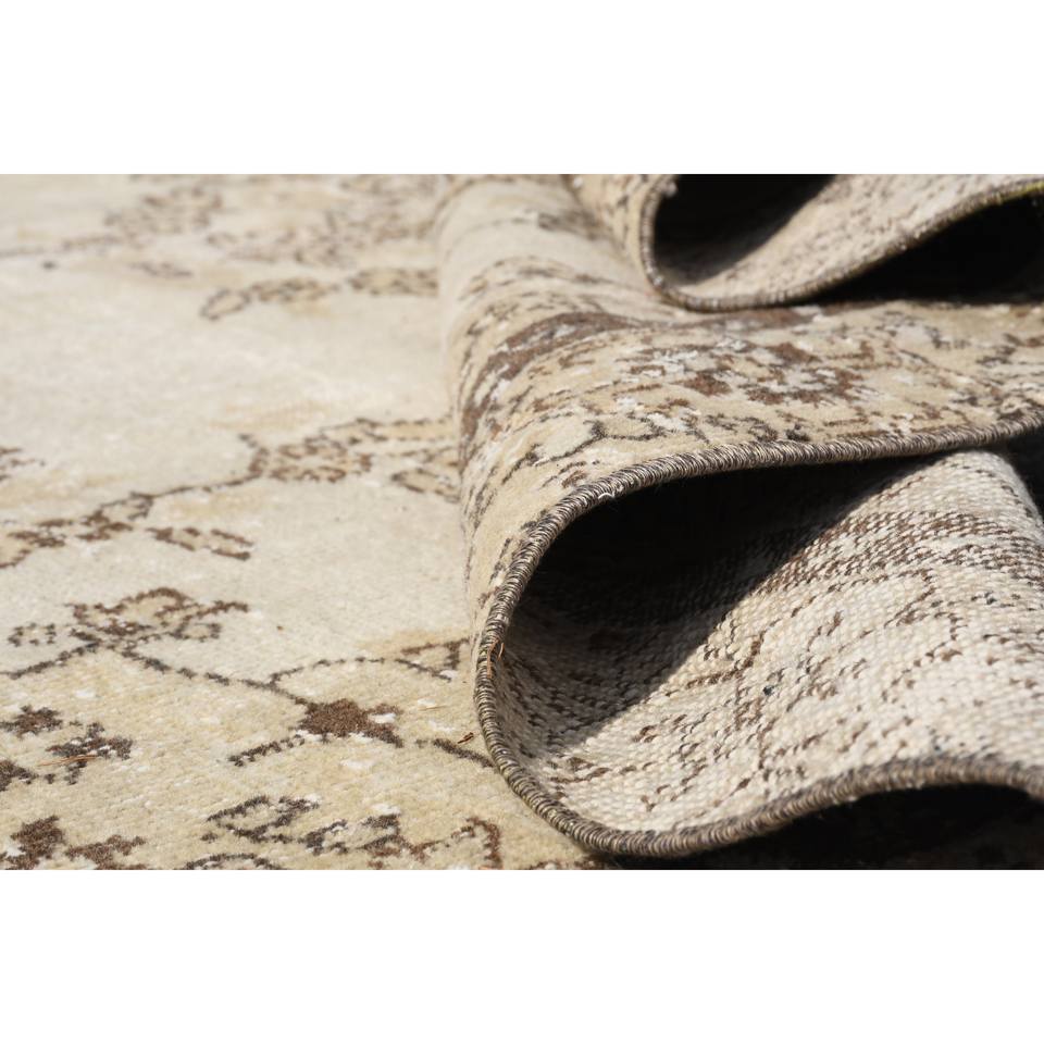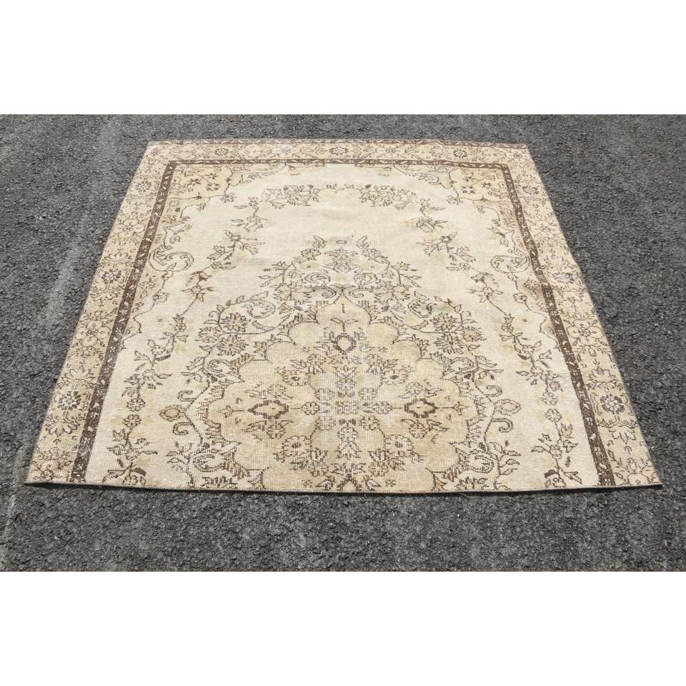 Classic Beige Brown 5.8 X 5.7ft Vintage Turkish Rug Faux Rabbit Fur Latex Patchwork Hallway Rectangle Sideboard Bedside 4m