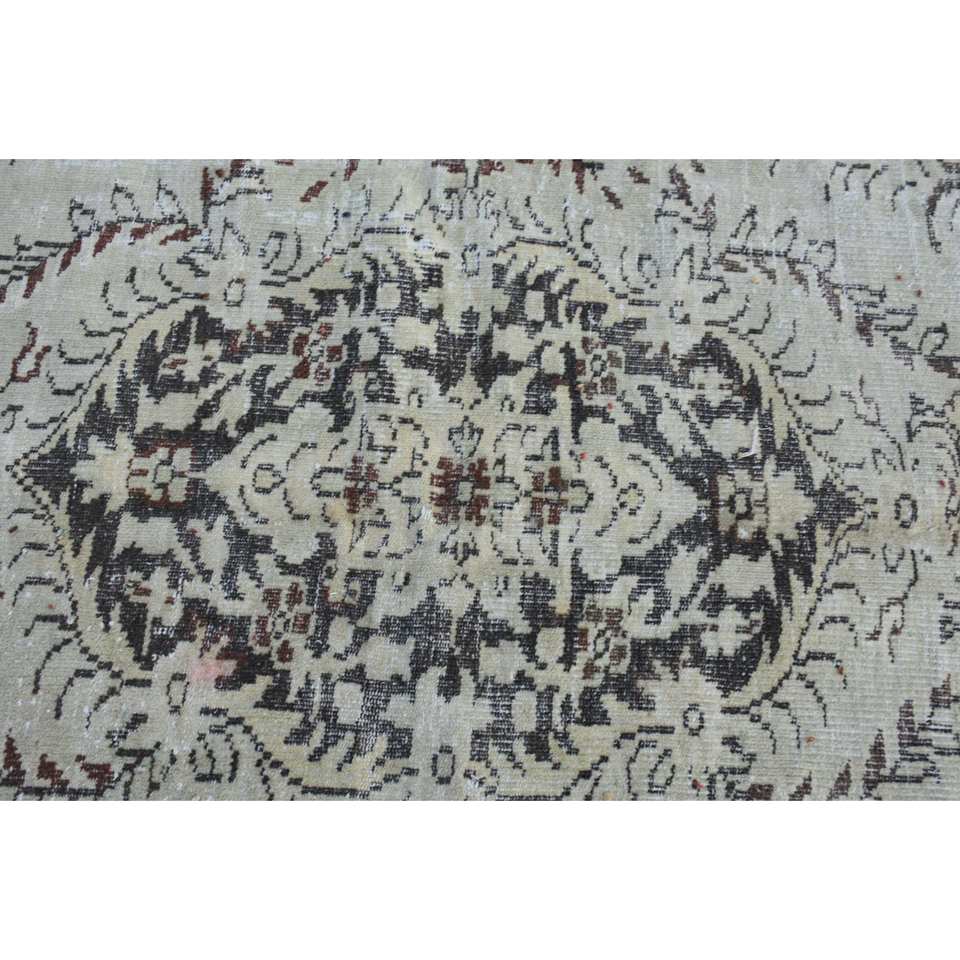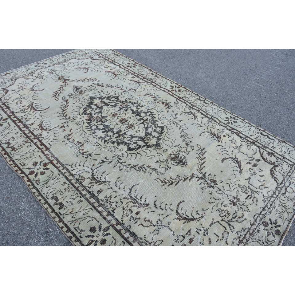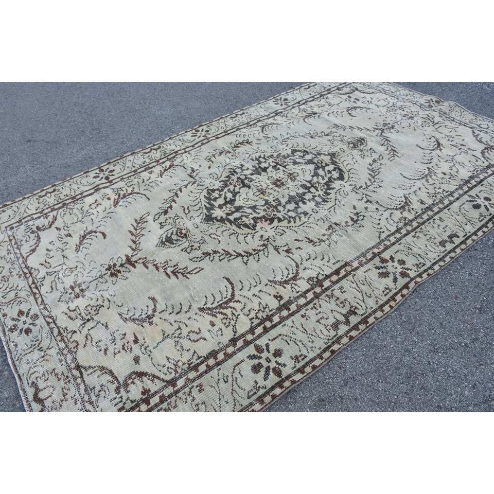 Classic Beige Brown 5.8 X 9.7ft Wool Rug Turkish Patchwork Design for Entryway Living Room Bedroom Latex Rectangular Hallway