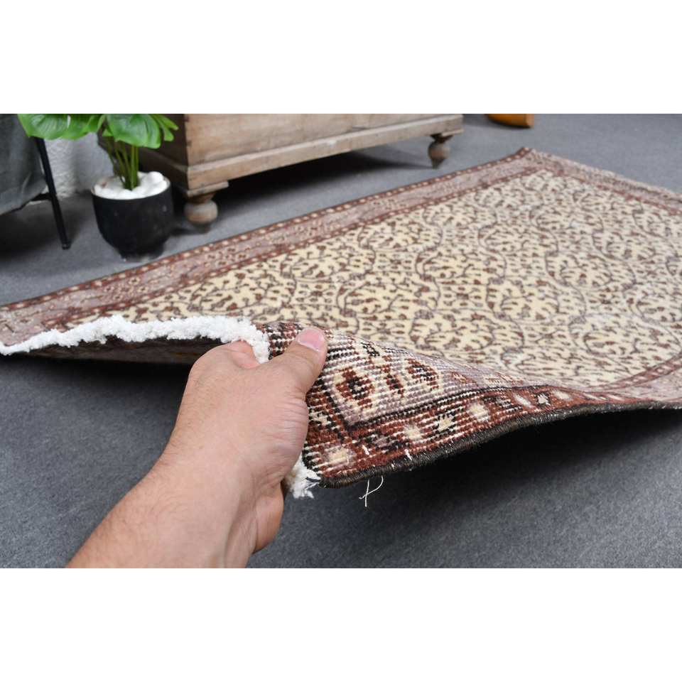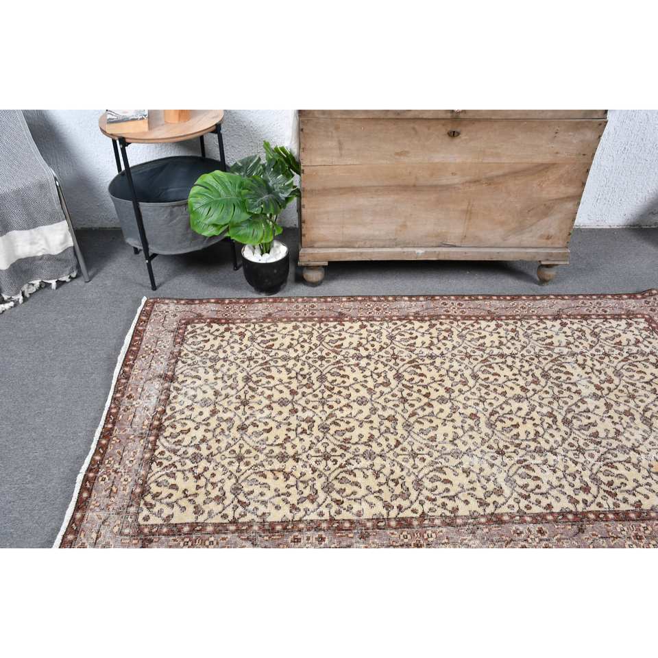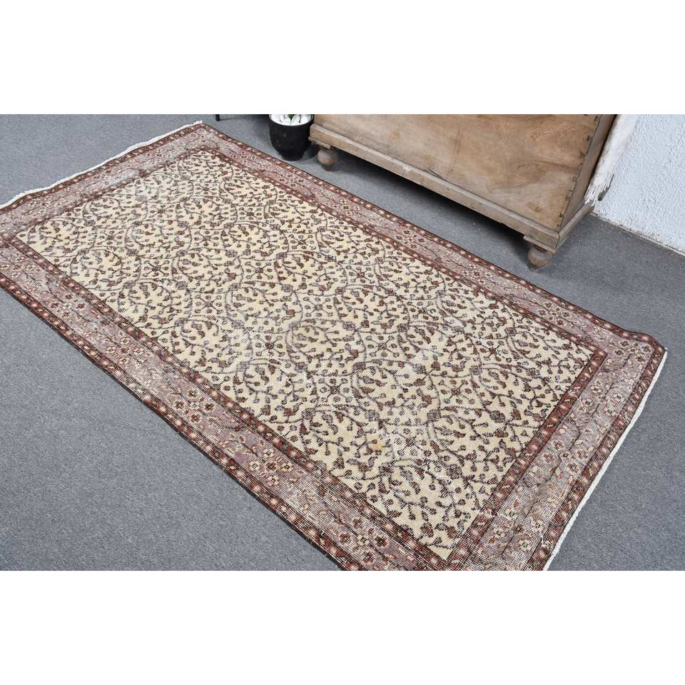 Classic Beige Brown Handmade Wool Turkish Rug 3.7 X 6.7 ft Rectangular Eco-Friendly Patchwork Design for Hallway Entryway Living